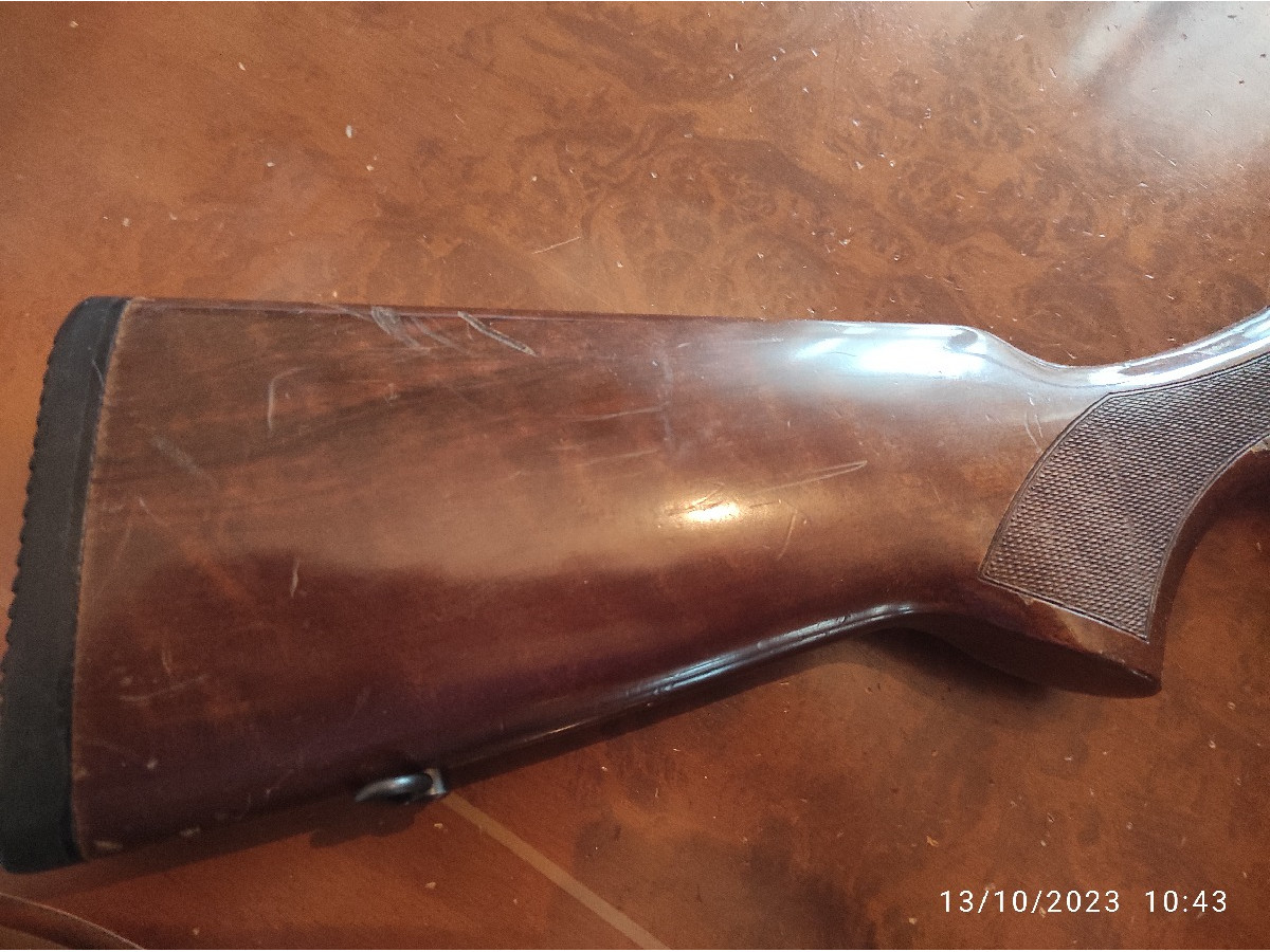 Vendo escopeta repetidora Beretta A301, en buen estado. Tiene las maderas un poco tocadas del uso, no presenta ningún fallo de funcionamiento aunque tiene sus años, bien mantenida. La vendo por pasarme al tiro al plato. Incluye funda de transporte, 5 polichokes y llave.