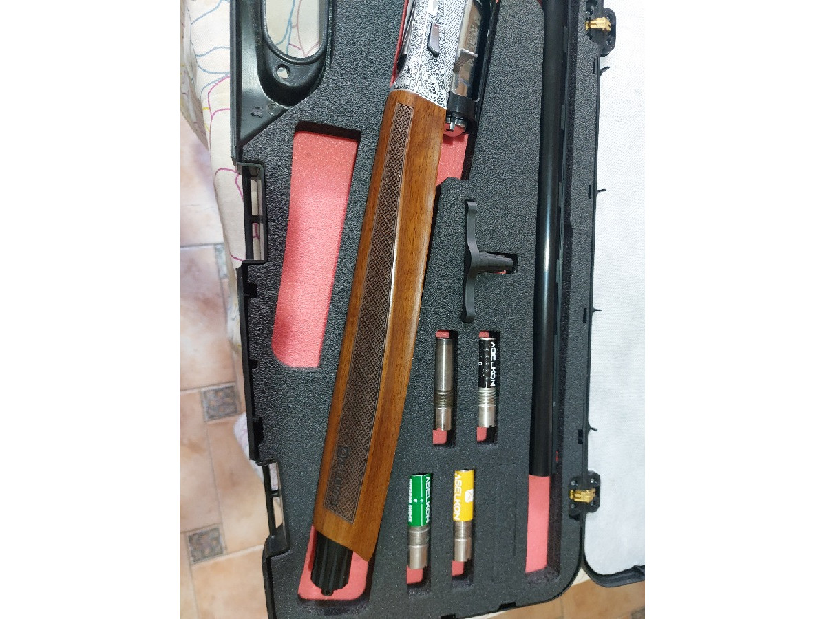Vendo escopeta Aselkon Inter Elegant Silver Black, cañón de 71 cm con 5 chokes interiores, calibre 12/76, ánima 18.3, cuñas para la regulación de la culata, anillas portafusil, maletín, aparte dos cantoneras de goma originales Aselkon de 10 y 20 mm, punto de mira de fibra óptica. Comprada en 2024.