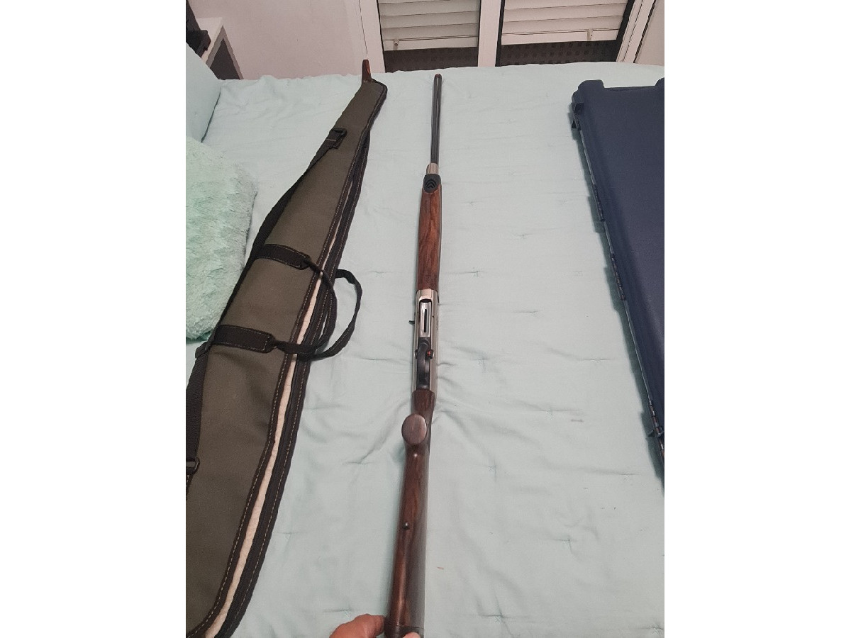 Pongo a la venta escopeta semiautomática Beretta A400 Upland 71 de cañón. Dispone de una carcasa niquelada con un exquisito grabado de una escena de caza. El diseño del pistol grip mejora el confort y aporta un nuevo diseño más estilizado. La A400 Upland es la excelente combinación entre las últimas tecnologías combinadas con el aspecto tradicional. Tiene polichoques exteriores valorados en 180€ los 2 y trae 5 más interiores en su maletín.