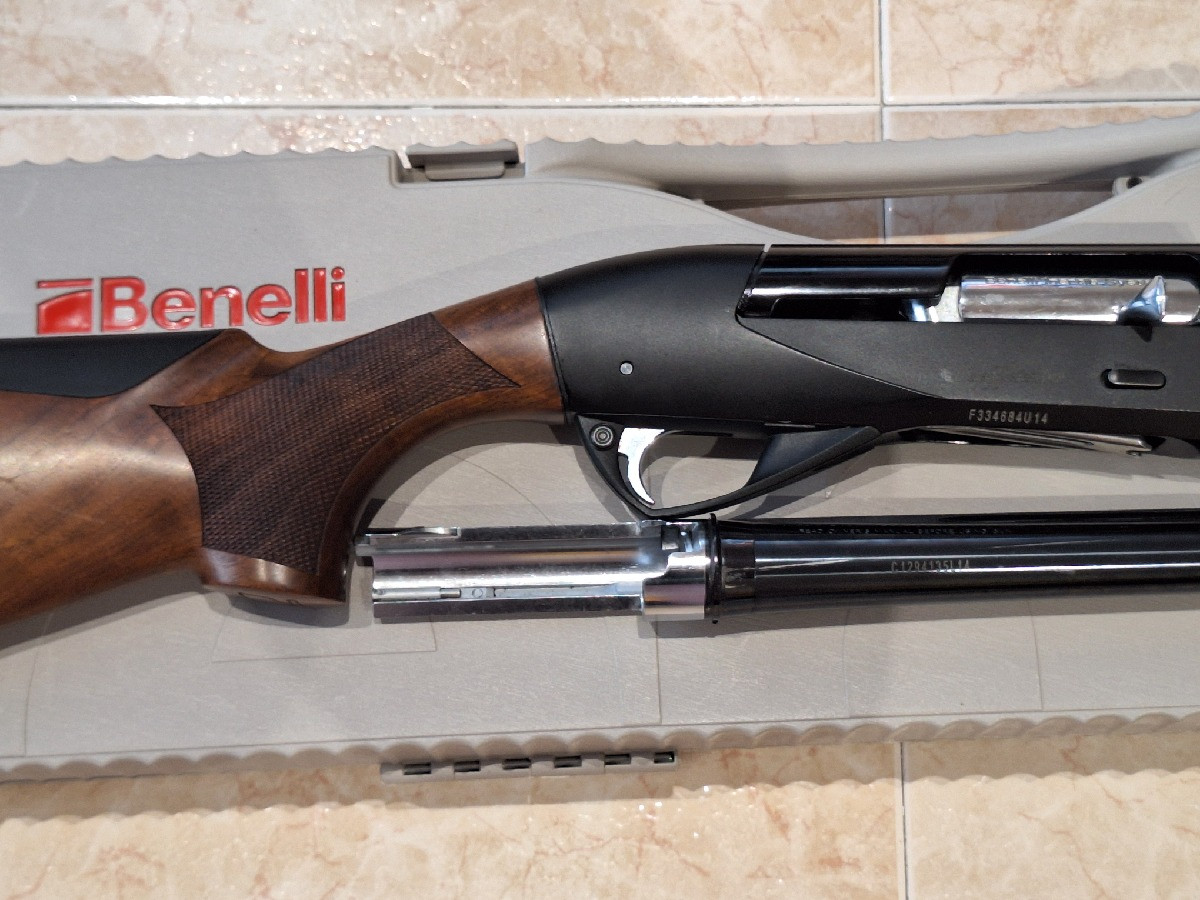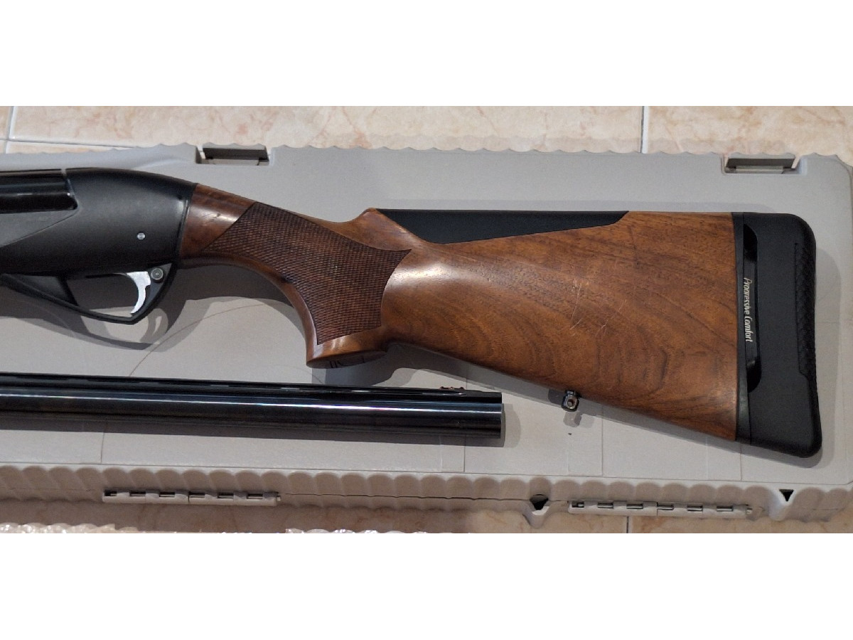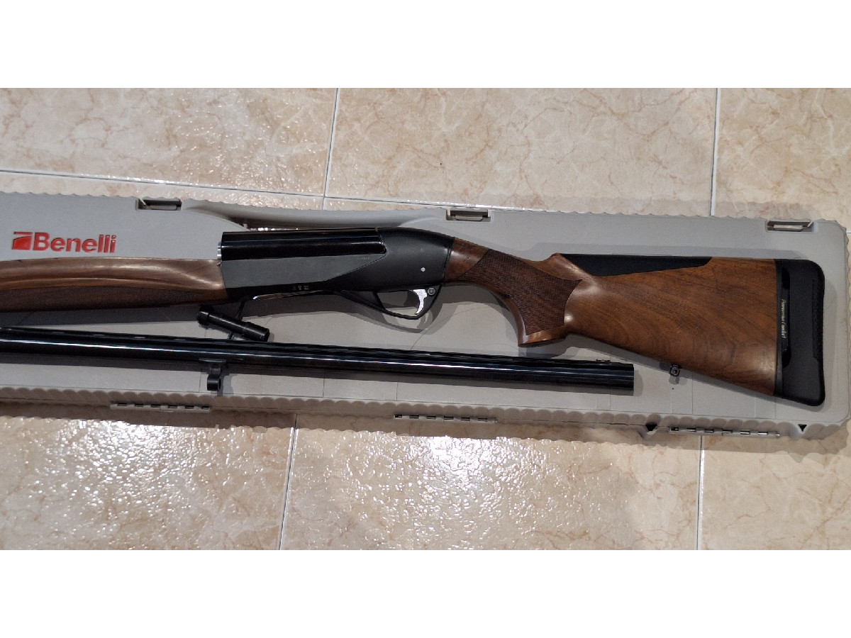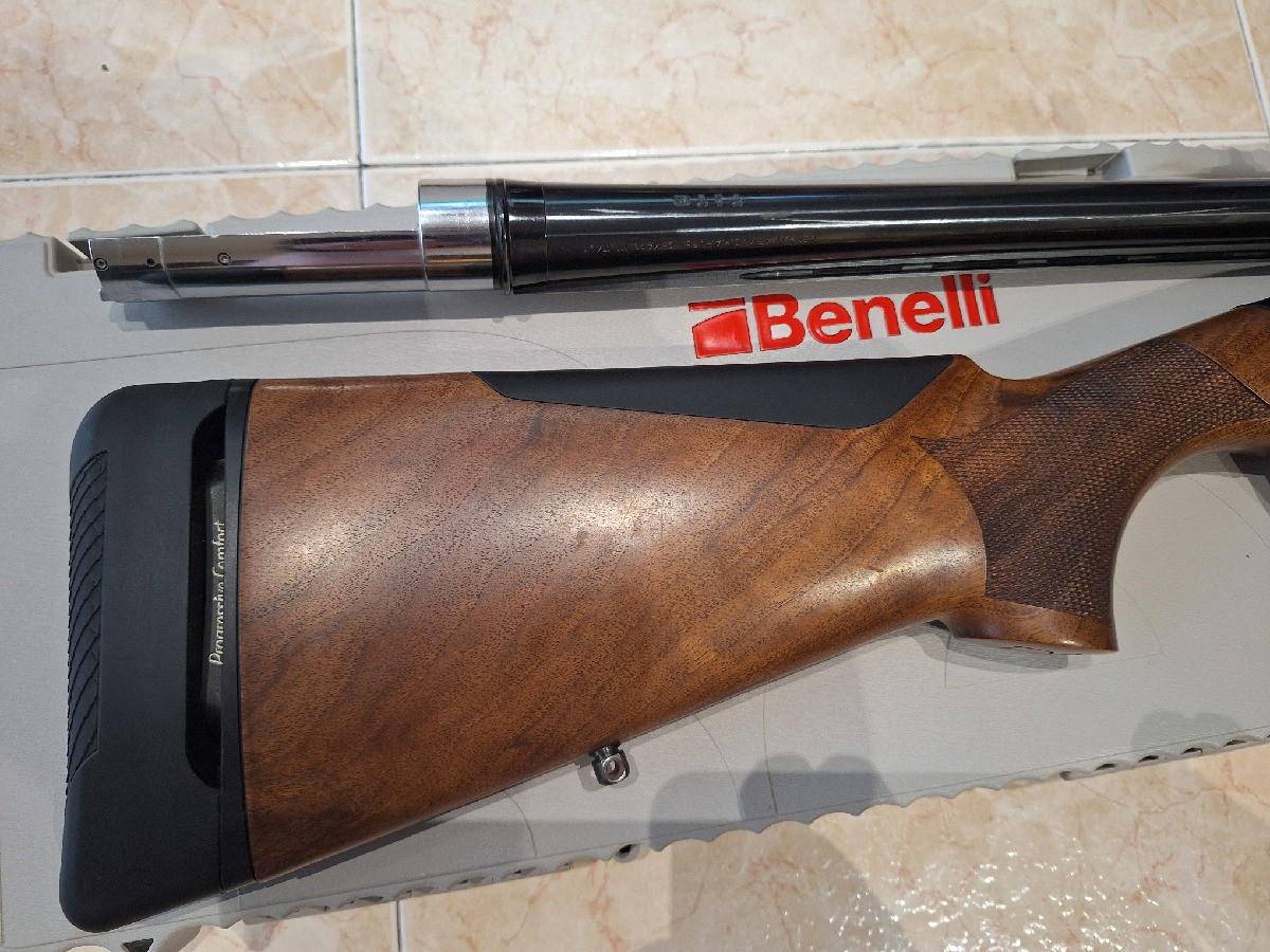 Benelli, Raffaello Crio, tipo Ethos, calibre 12/76, con el lomo de la culata y su cantonera, "anclada en el amortiguador de retroceso", son nuevos, a estrenar. Estado impecable. Precio 1.350 €.