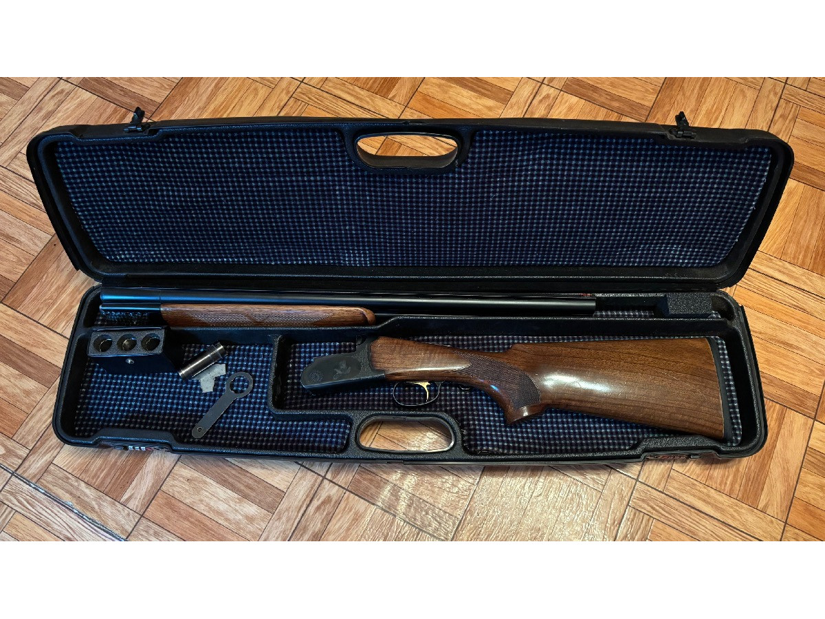 Escopeta superpuesta marca A.M. Mazorriaga (Eibar) calibre 12 con cañón de 61 cm, con polichoques de *, **, ***, ****, liso y otro rayado para becada, con selector de tiro y expulsora. Con su maletín rígido. En muy buen estado. Se vende por poco uso.