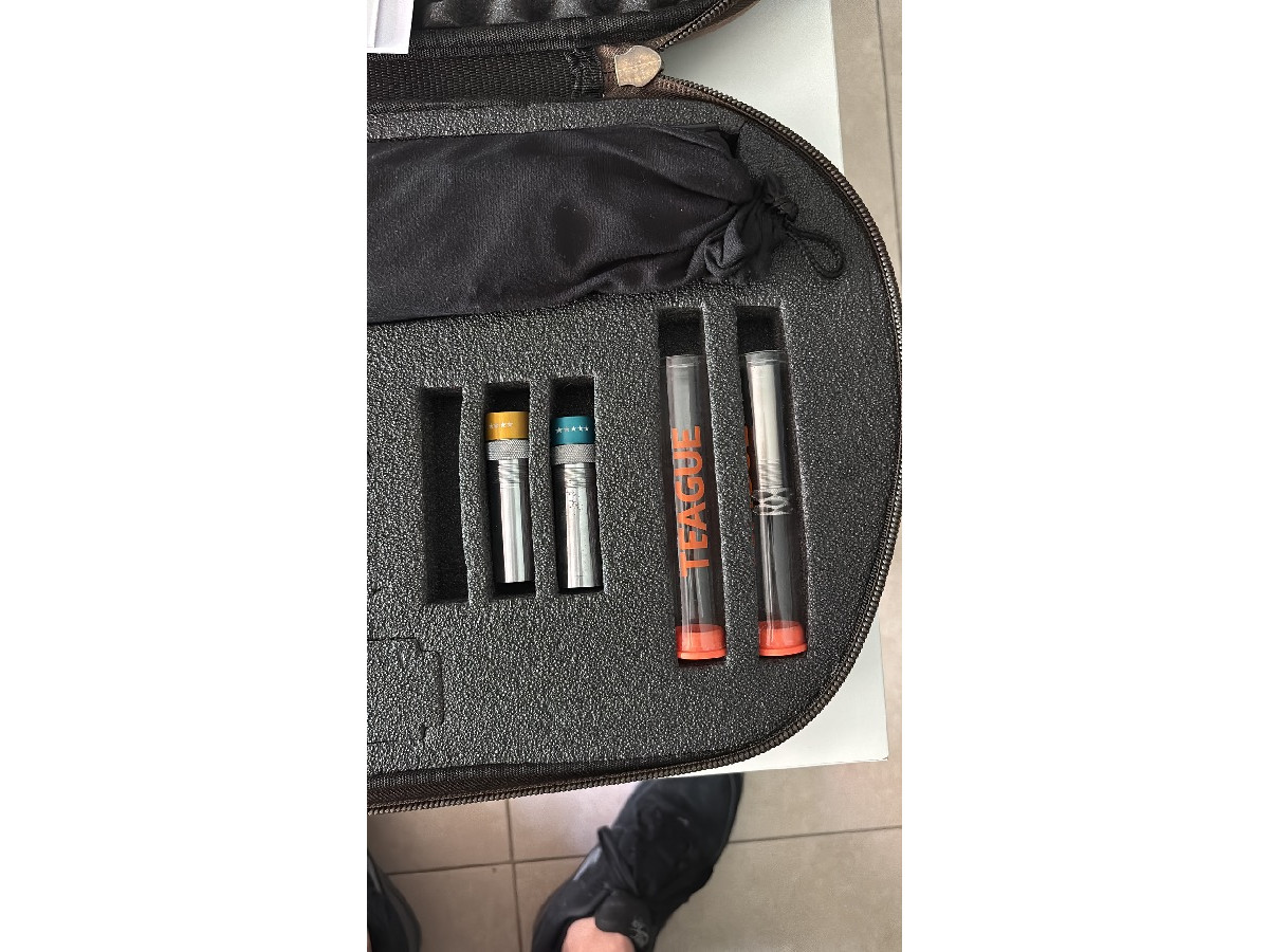 Culata regulable, selector de tiro, polichoke intercambiable, maletín de transporte.