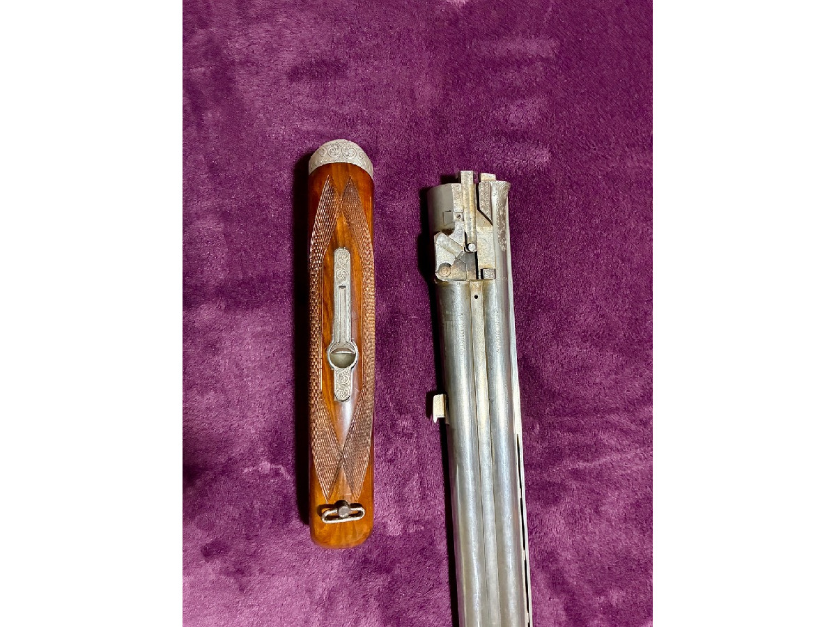 Escopeta superpuesta de caza, con doble gatillo, cañón de 71 cm fijo. Expulsora con 3 y 1 estrellas. Cañones color acero. Buen estado.