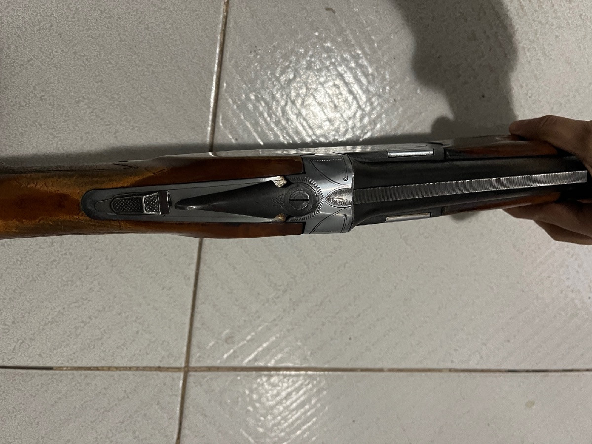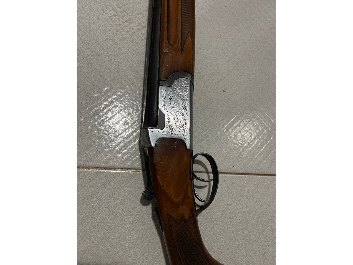 Escopeta superpuesta calibre 12 marca FS. En muy buen estado, usada para caza menor, mayor y tiro al plato. Bastante rendimiento y buena calidad.