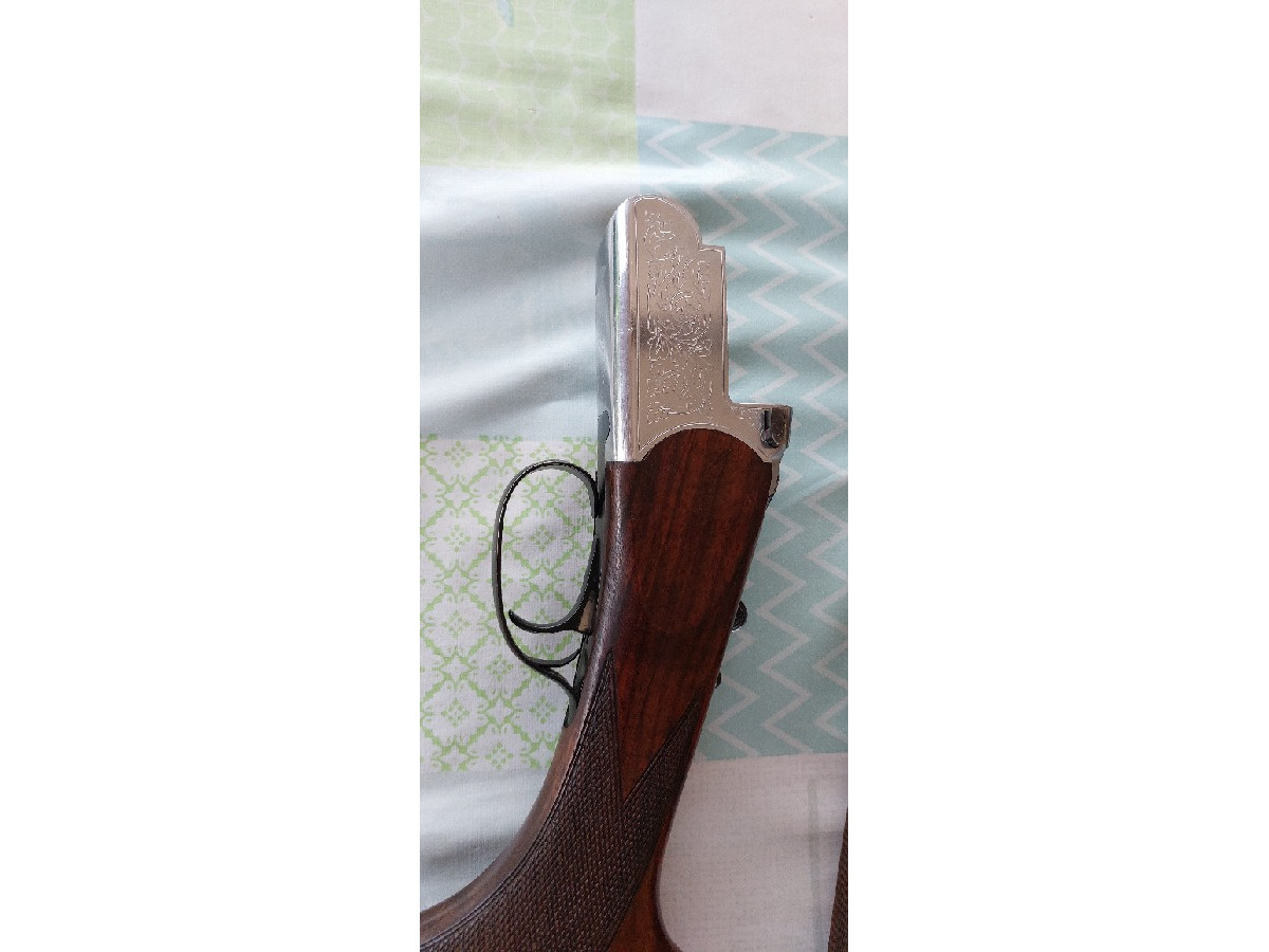 Escopeta superpuesta F. Sarriugarte, modelo SP. calibre 12, expulsora, 1 y 3 estrellas sin polichock, está como nueva de cromados y pavonada hace poco tiempo en Valencia.