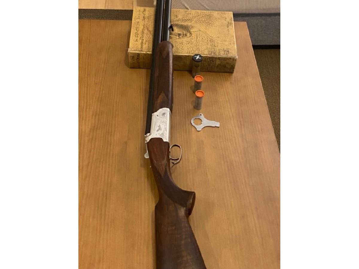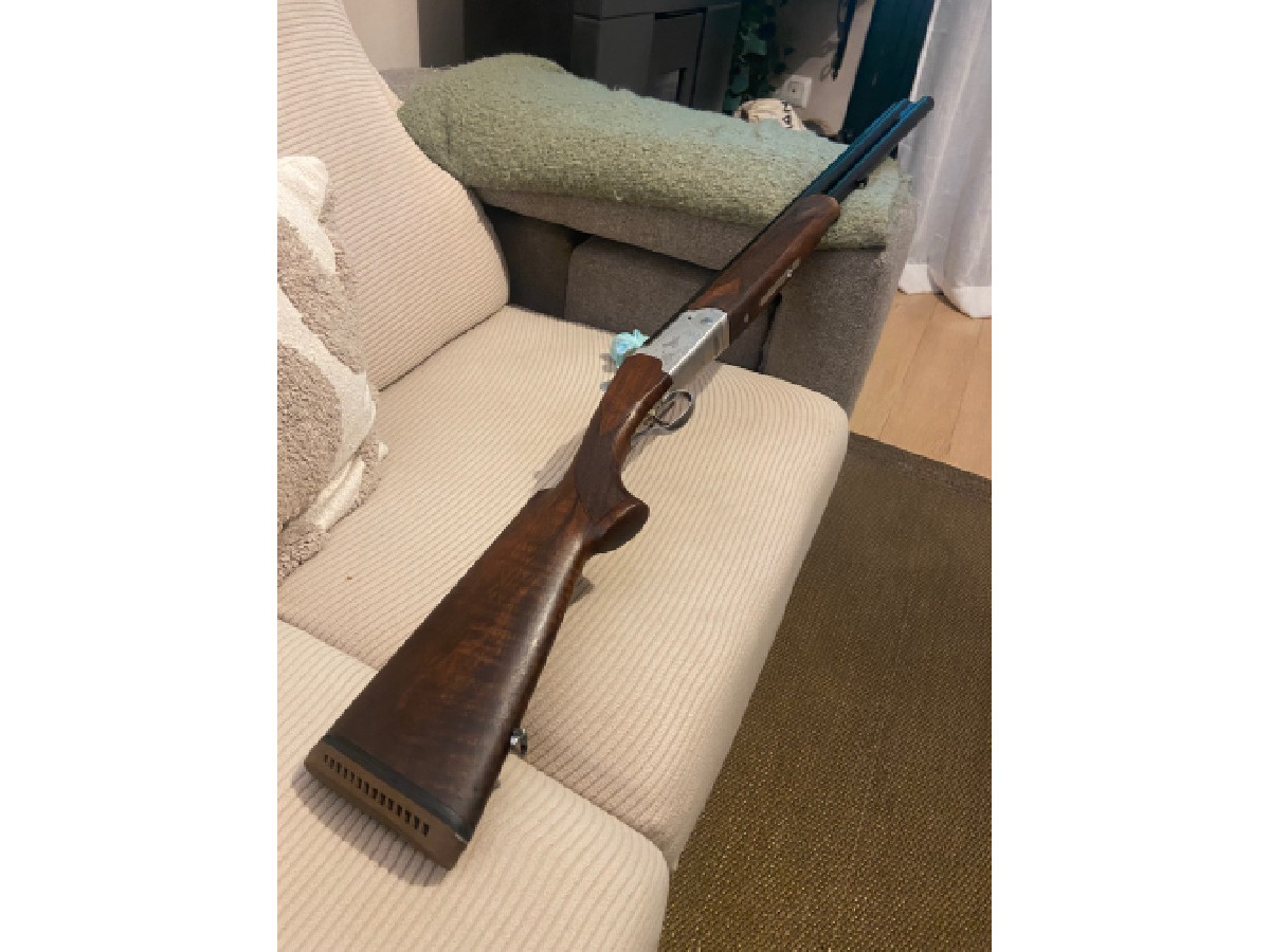 Escopeta superpuesta Krico calibre 12 especial becada, súper ligera para esta caza. Tiene un choque estriado y 4 choques más. Bien cuidada, cañón de 71 cm.