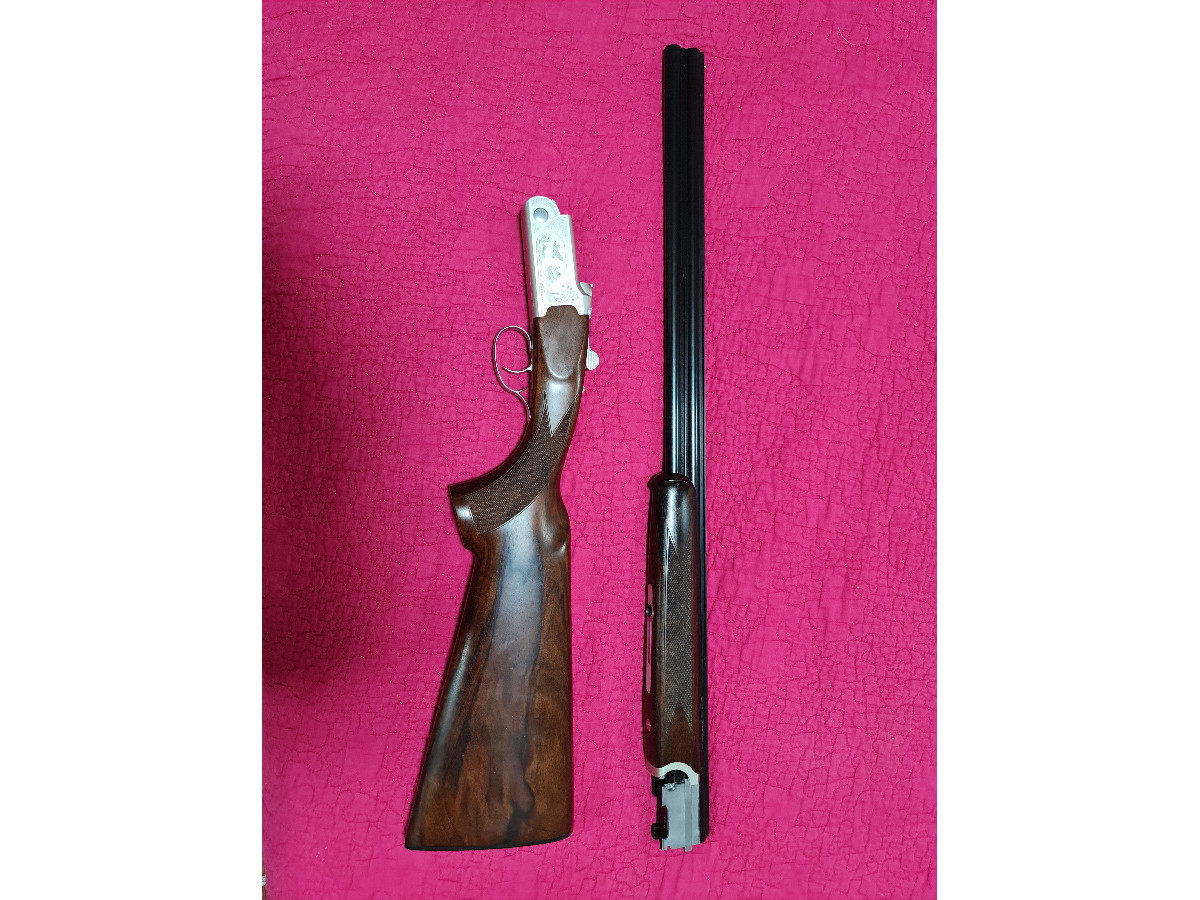 Escopeta superpuesta Krico calibre 410, de 66 cm de cañón, con selector de tiro, recámara mágnum y 5 choques. La escopeta está nueva, se ha usado muy poco. Un capricho.