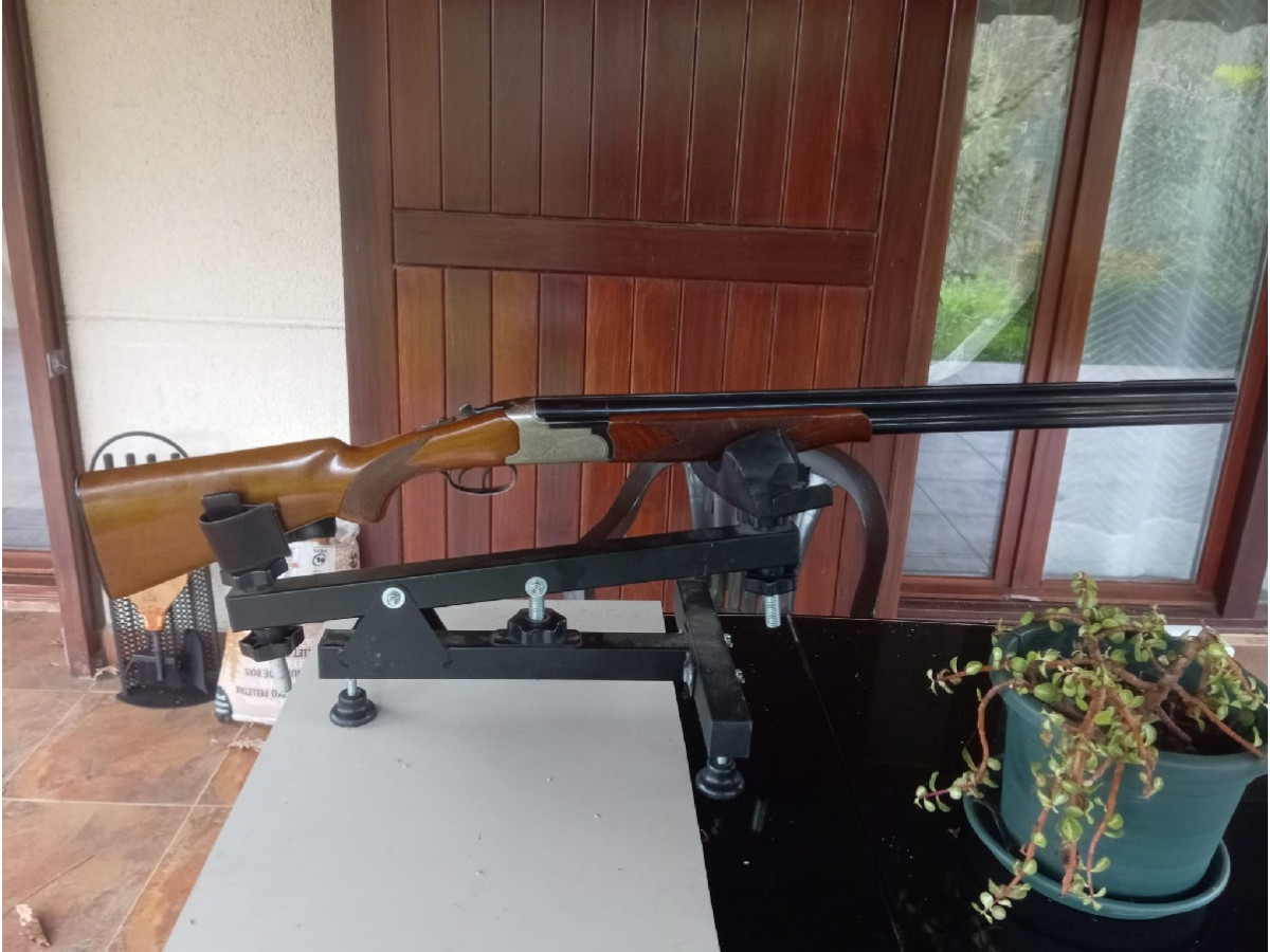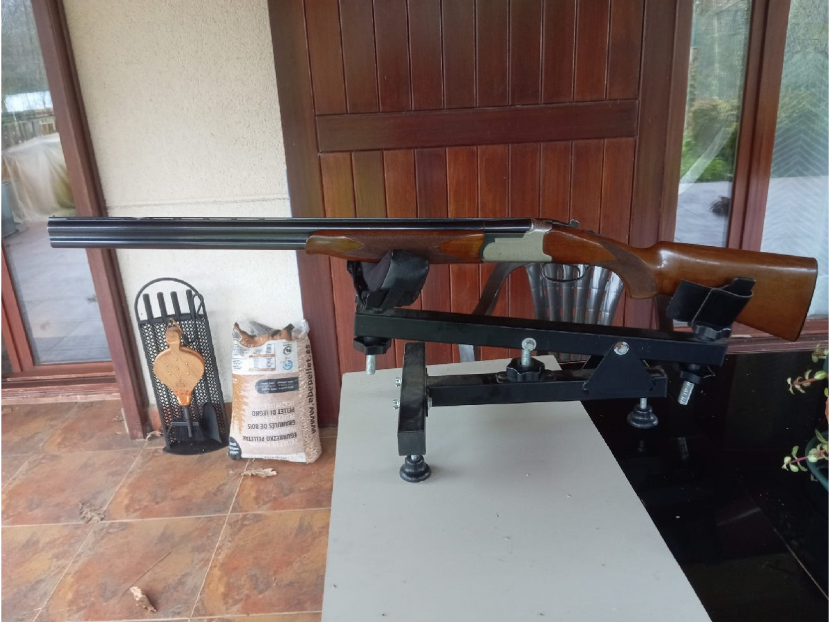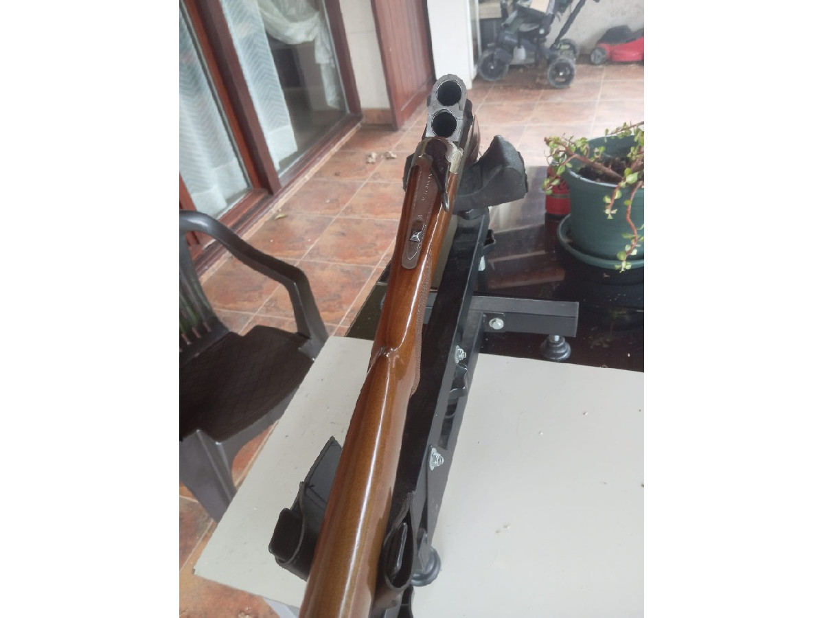Superpuesta Lanber para zurdos, muy bien cuidada, con pequeño golpe en la banda superior, choques fijos 1 y 3. La escopeta está en MunguÃa.