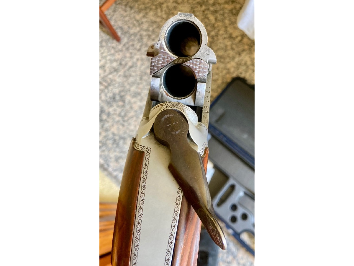 Superpuesta Aramberri fuego, de plato. De serie ** y * fijos. Se le acopló en el cañón derecho choke interior más abierto. Adaptada para zurdo. Muy buen plomeo y ajustada. Buen estado.