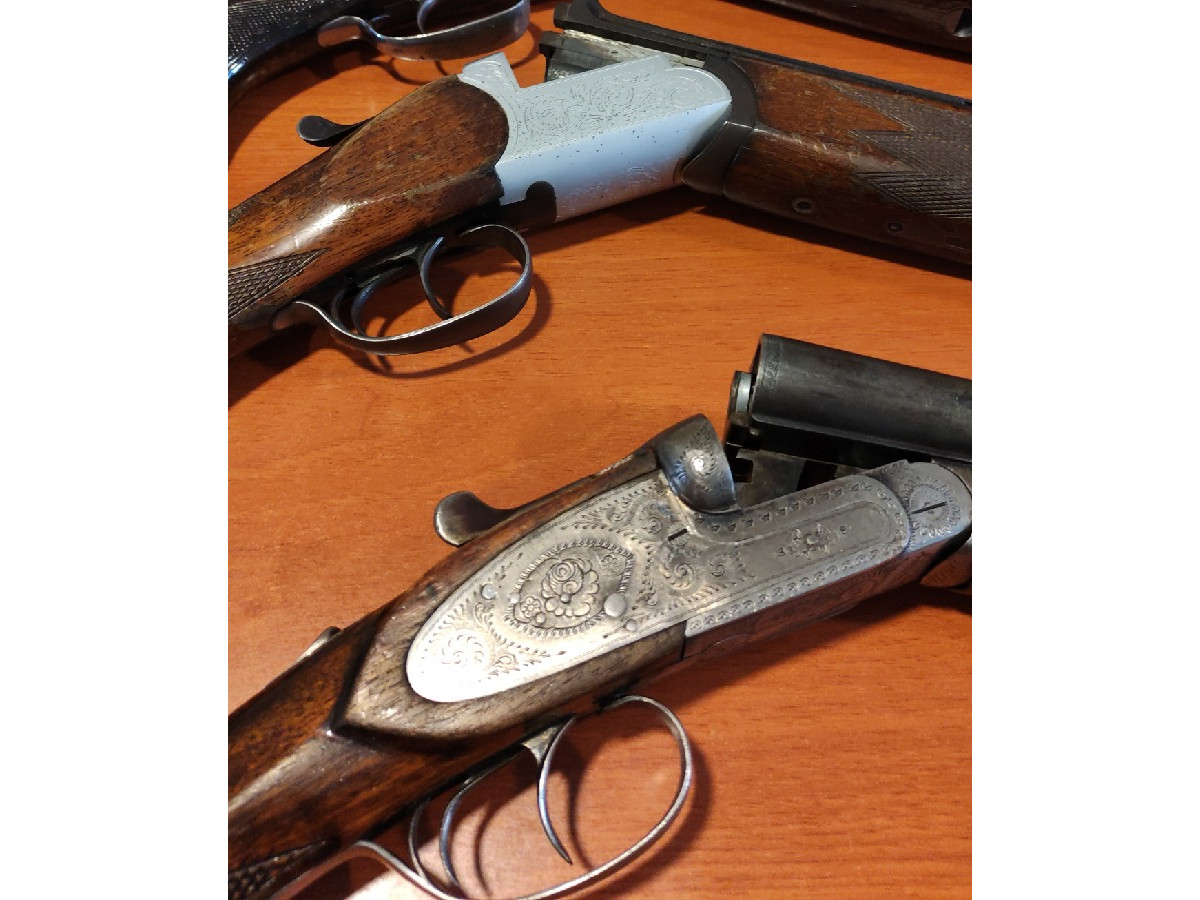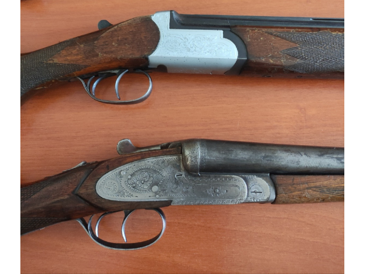 F. Sarrasqueta y Ugarteburu. Superpuesta y paralela. Funcionan perfectamente. A dos gatillos, para tiro amplio y corto o cerrado y largo.