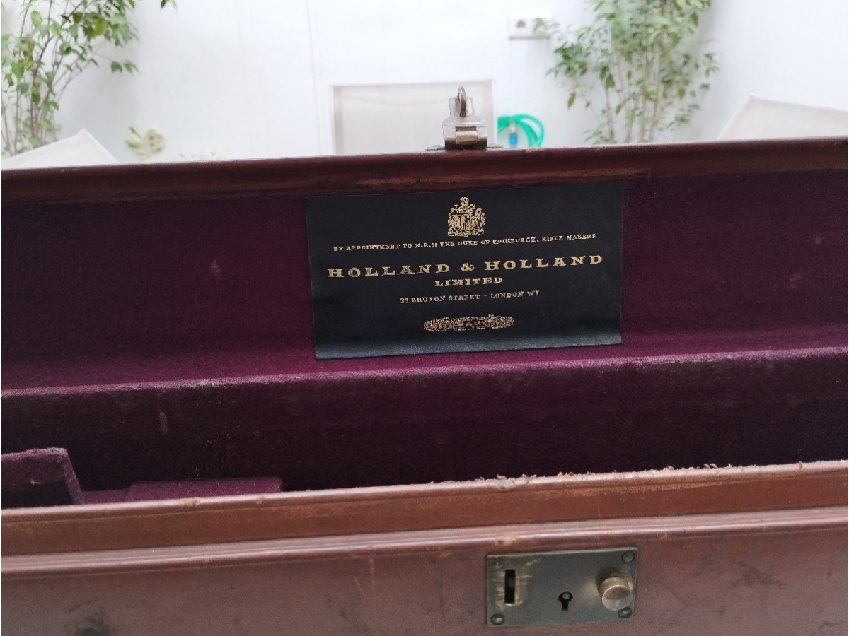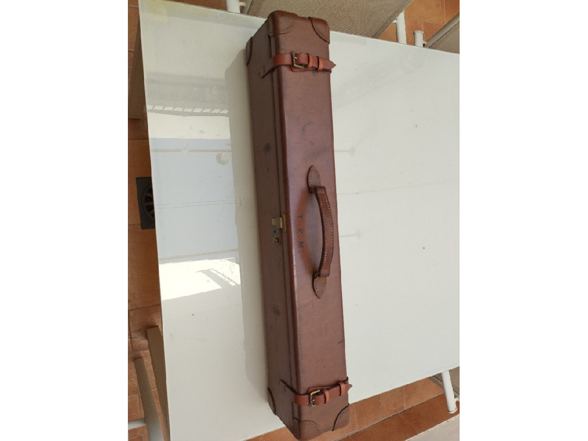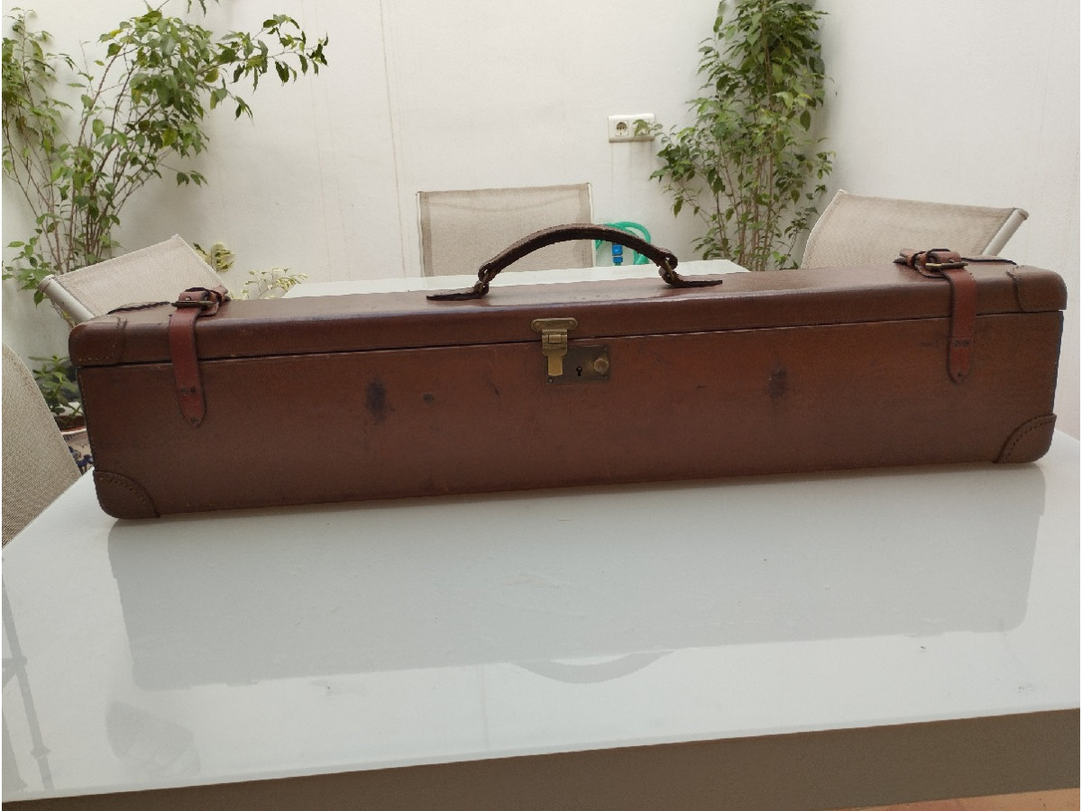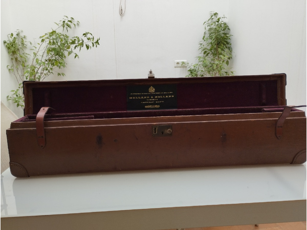 Estuche de cuero Holland & Holland para escopeta de 28" (71 cm) de cañón, en buen estado, con etiqueta original.