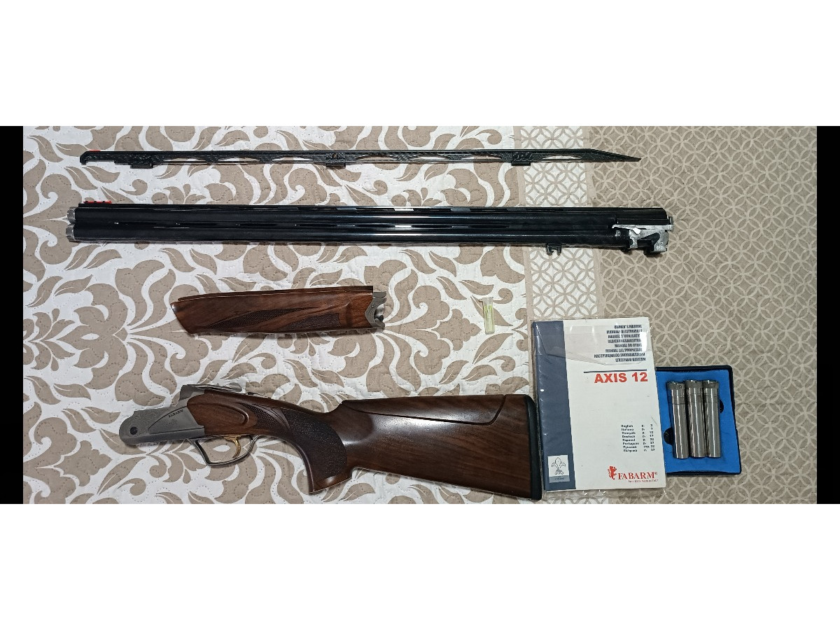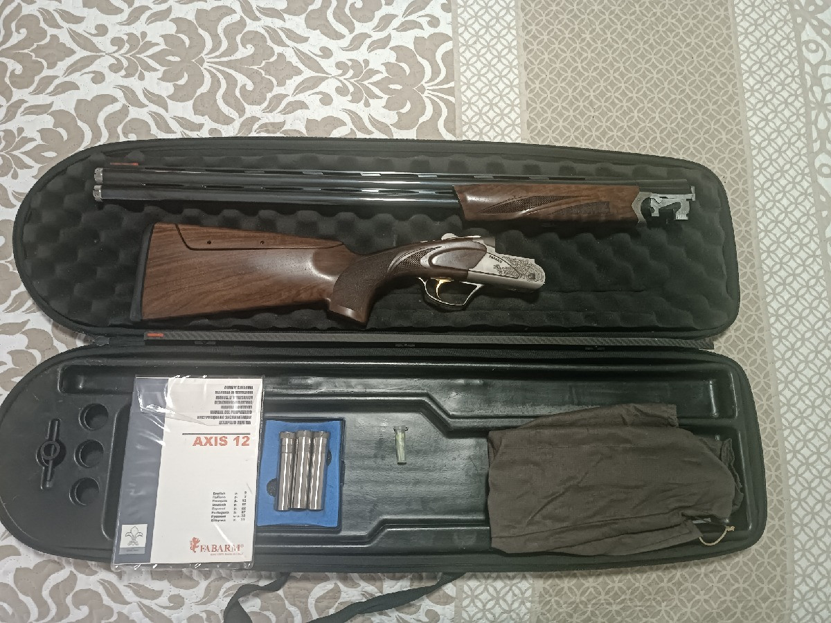 Escopeta superpuesta FABARM AXIS SPORTING de 76 cm de cañón, con cinco chokes, varios puntos de mira, paños para guardarla, maletín y banda alta adicional de fibra de carbono, con muy poco uso se puede ver y probar en Madrid.