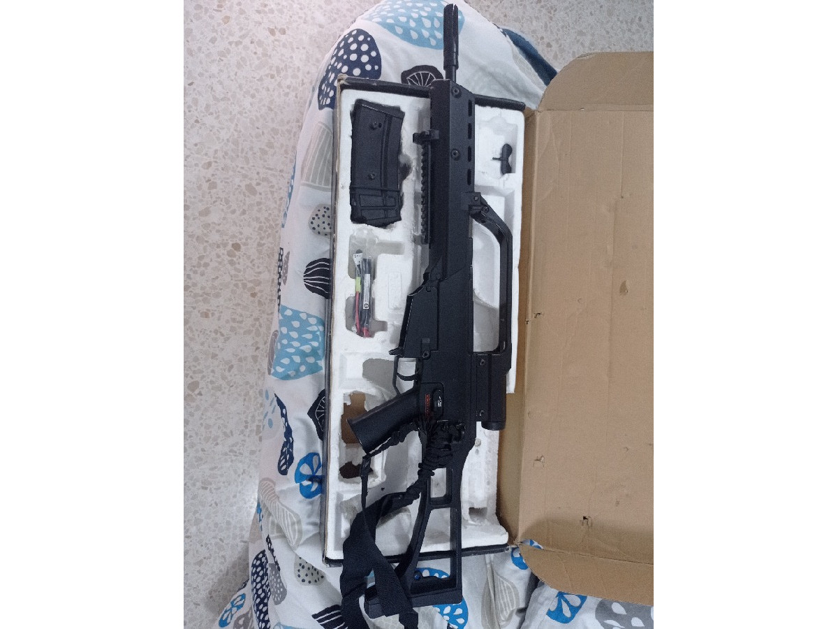 G36k con mira x4. Además tiene dos baterÃas de lipo y correa de un punto. Upgrareada a 410 FPS engranajes de acero. Caja original.