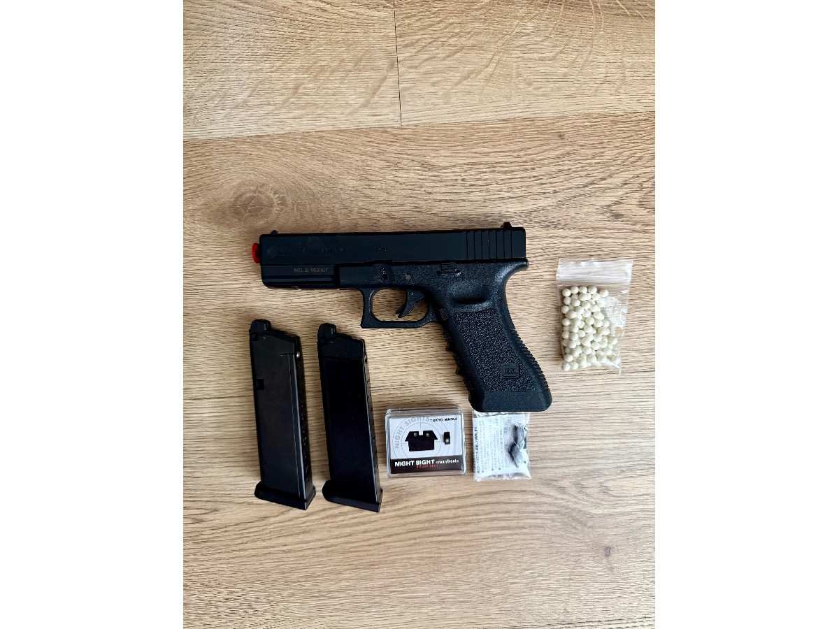 Se vende pistola Glock 17 3ª Gen. Tokyo Marui, NI UN SOLO USO, esta NUEVA. Incluye los dos cargadores, así como accesorios de repuesto que tenía cuando la compré en Ranger Tienda.