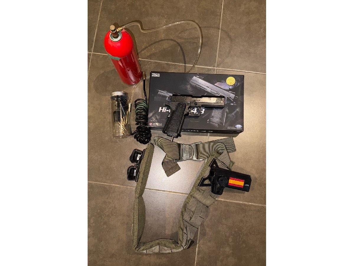 Excepcional pieza conservada en su caja original. Full upgrade, cañón de precisión y goma. 3 cargadores preparados para HPA para usar con botella y aparte sus válvulas originales para usar cargando de gas los cargadores. Chaleco de la marca Inmortal Warriors con porta cargadores, mochila para botella, cinturón con cartuchera y 2 porta cargadores más. Botella y sistema HPA.
