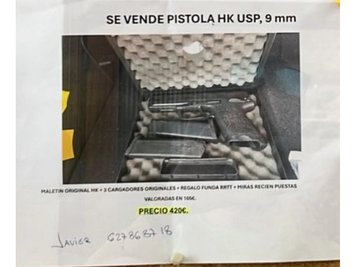 Pistola HK USP, 9mm, incluyo 3 cargadores, funda de recorrido de tiro, maletÃn original HK, miras recién puestas valoradas en 105€ (+ las originales).