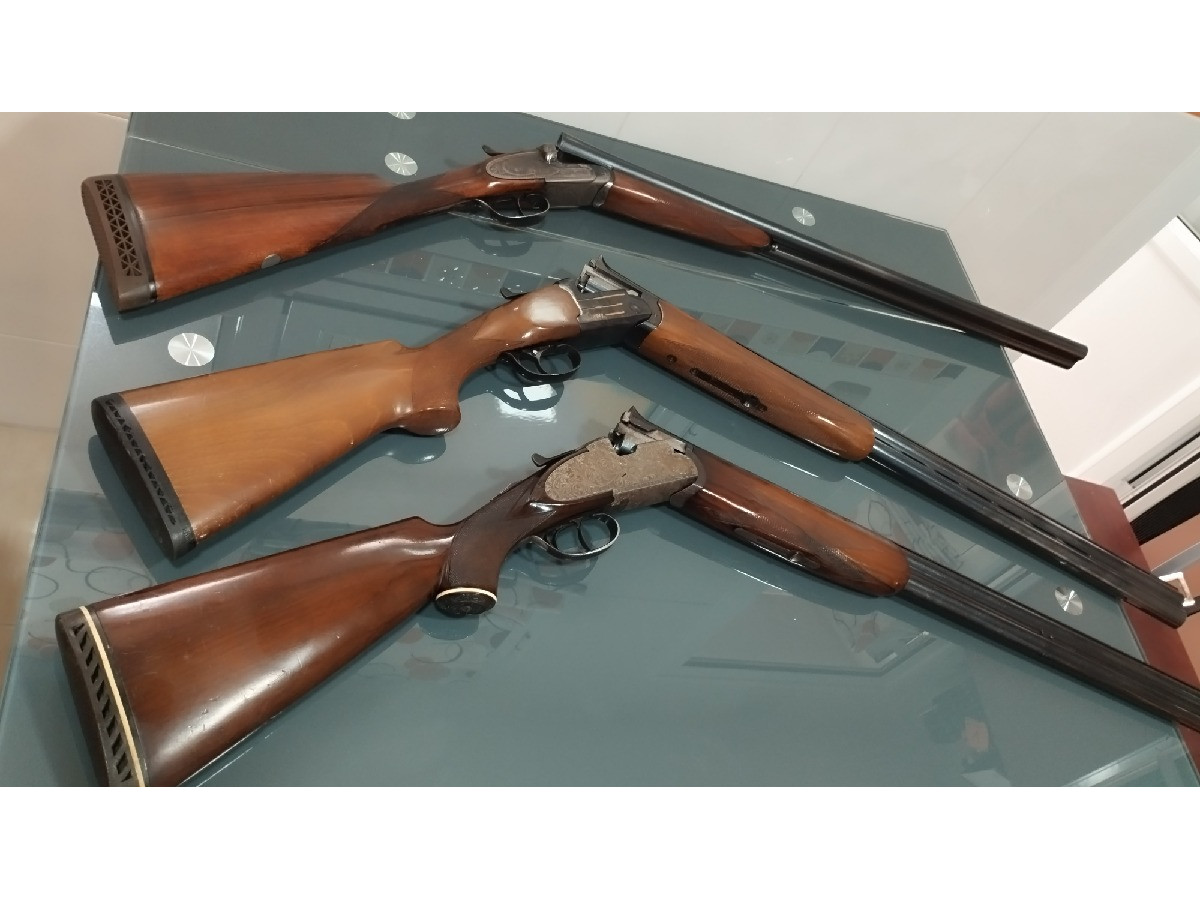Modelo 75 EX. Yuxtapuesta de platina completa de doble seguro, doble disparador articulado, válvulas de escape de gases, expulsores automáticos, madera de nogal. Aceros especiales forjados y tratados con cañones sistema demiblock. Chokes 3 y 1. Villarrobledo, Albacete.