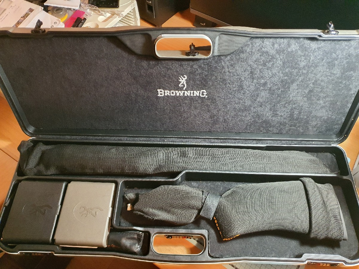 Escopeta superpuesta Browning B725 Pro Master con culata de zurdo. Es de abril de 2020. Cuenta con banda alta ajustable, contrapesos, dos gatillos, 3 cantoneras y 8 choques Invector DS. Destaca por su excelente equilibrio, escaso cabeceo y versatilidad gracias a la culata ajustable. Punto de mira y varios LED de recambio de color rojo, verde y blanco que pueden ser cambiados con facilidad. Largo de cañón de 76 cm. Selector de tiro. Está en perfecto estado y recién revisada por armero. Se vende por exceso de armas. Se puede ver y probar en Castellón y Valencia.