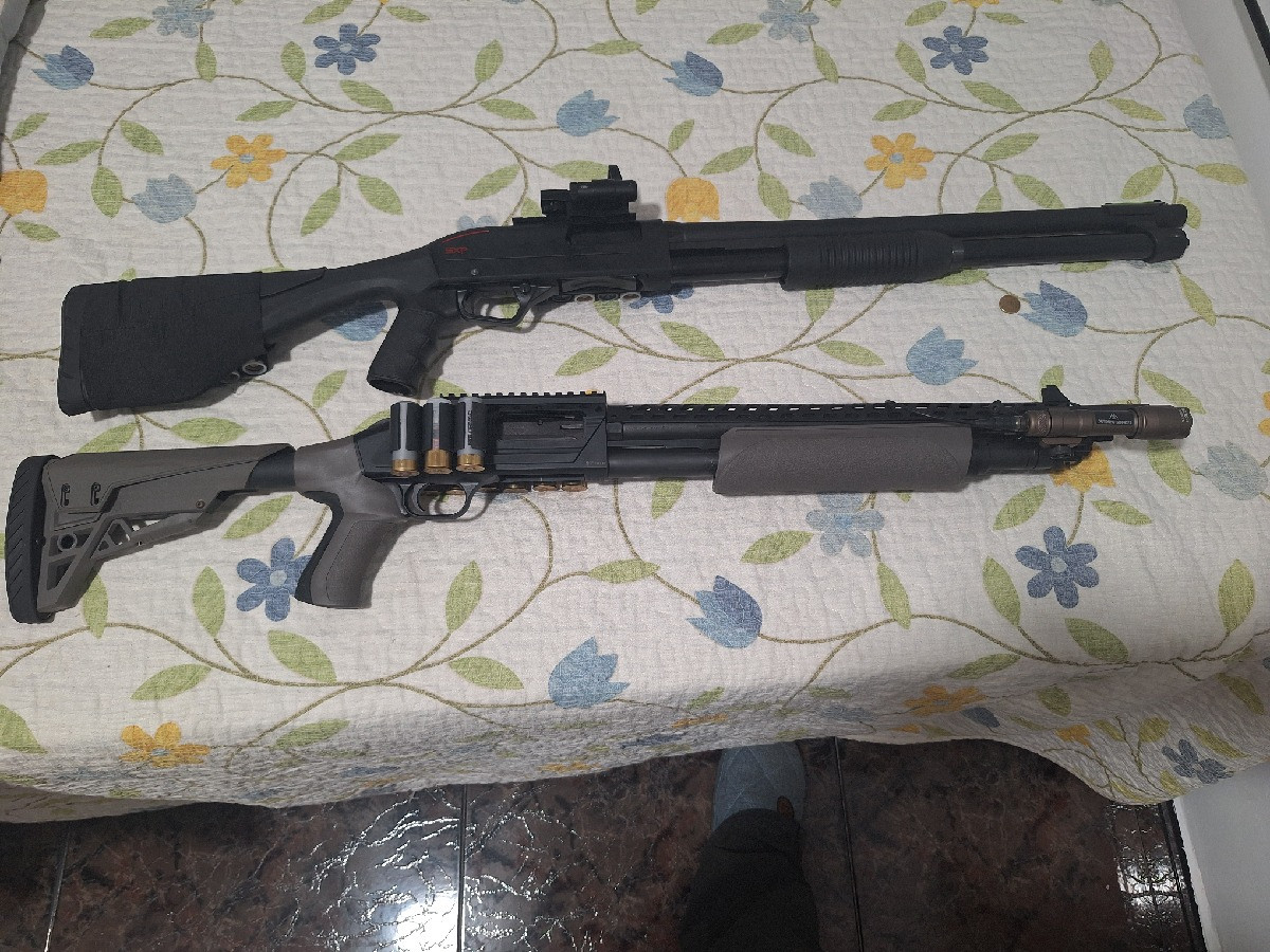Vendo dos escopetas corredera: 1 Winchester SXP Defender High y 1 Mossberg ATI Tactical gris con raíles y portacartuchos, culata extensible. Disparados 4 cartuchos con cada una. Las vendo por no usar, las compré por capricho.