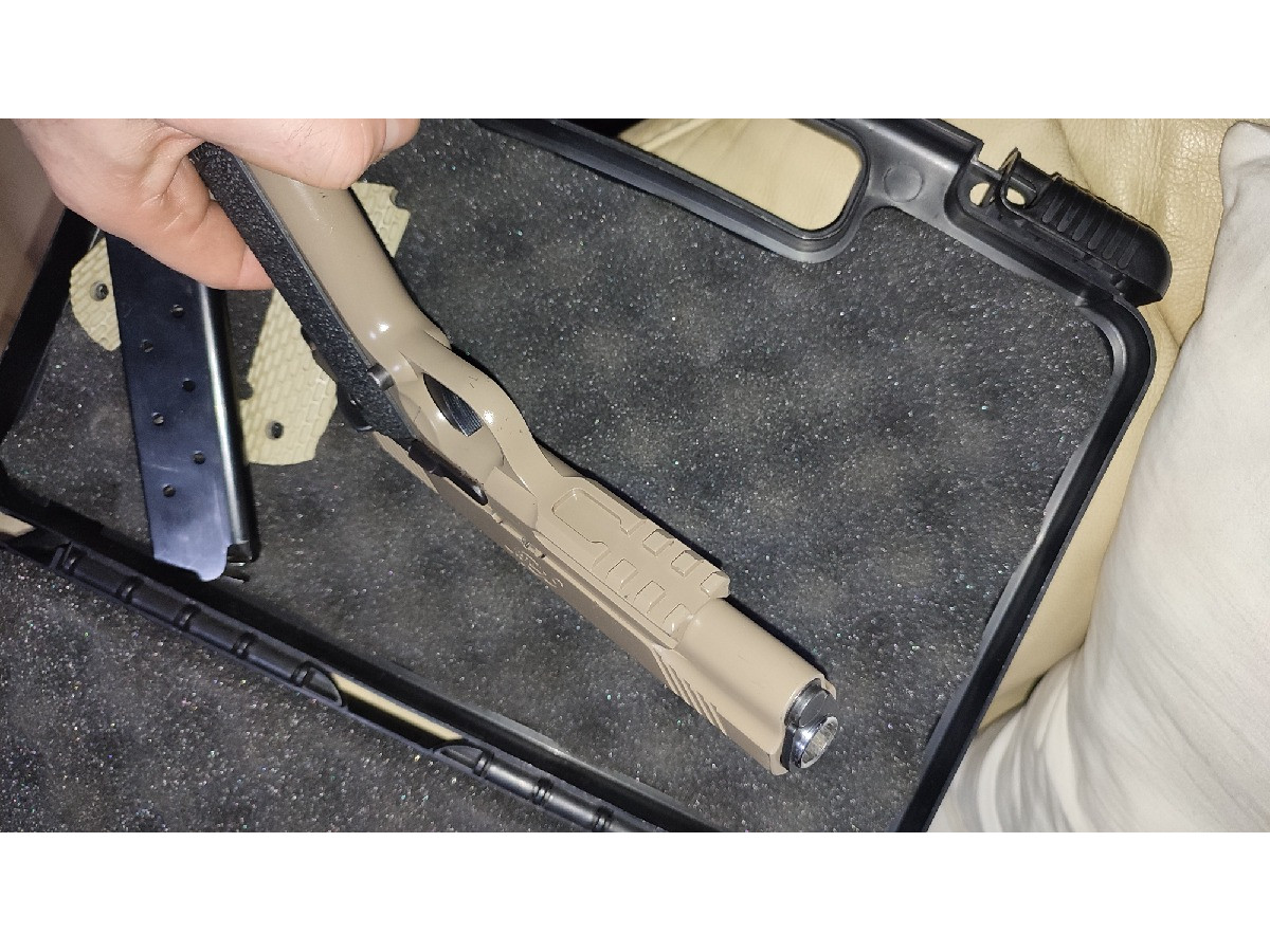 Pistola de prestigiosa marca kimber americana solo 2 unidades en España traída de América en plataforma 1911, el arma es del calibre 45 ACP con gatillo de combate con miras en cola de milano regulable con punto verde para la noche, lleva carril incluido en el armazón para linternas o láser, es una pistola táctica de combate no indicada para precisión. La vendo con su caja original y sus papeles, un cargador extra y cachas blancas, vendo por cese de actividad.