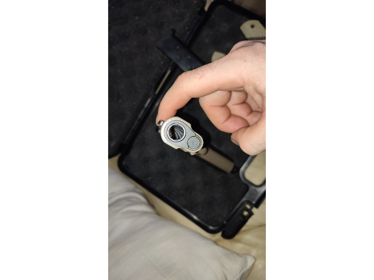 Velocidad de torsión (mano izquierda): 16  Miras nocturnas de (tritio) con altura de supresor y hombro de amartillado fijo
