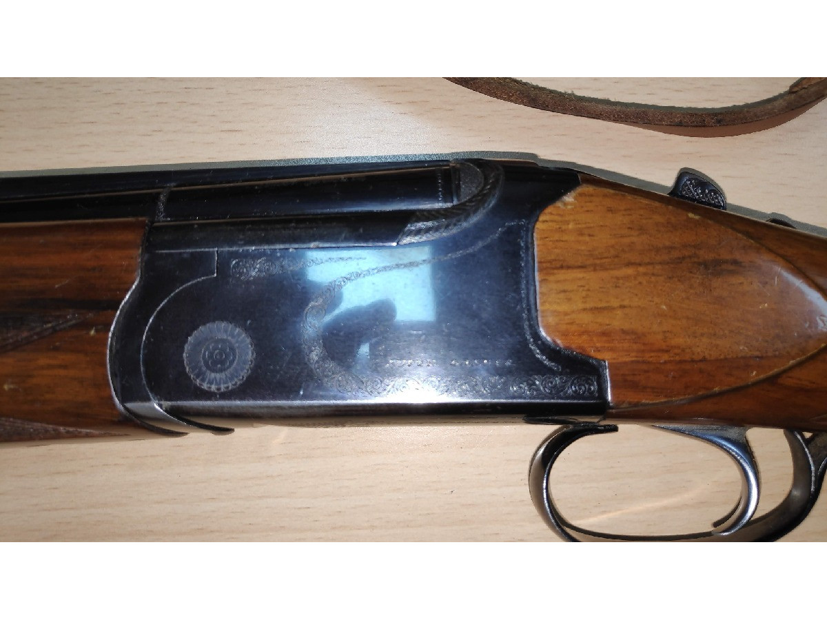Escopeta superpuesta Lamber Ibargun del calibre 12 con cañon de 70 y un solo gatillo. En buen estado . Se vende con pocos usos,