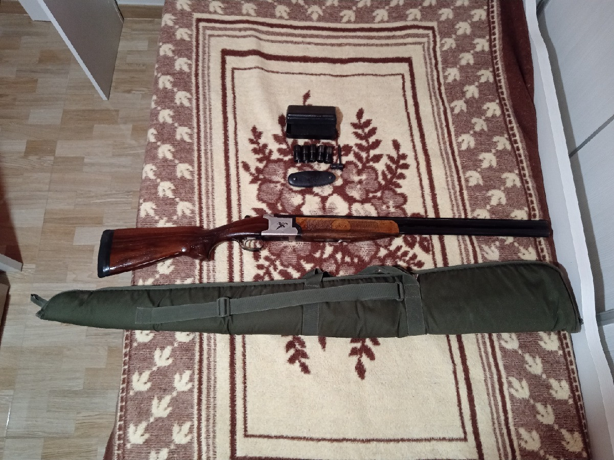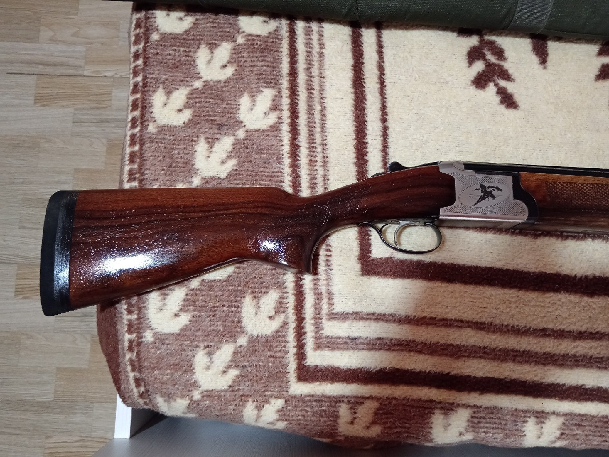 Escopeta superpuesta Laurona expulsora y selector de tiro. Incluye 5 polichoks, llave, cantonera de repuesto y funda.