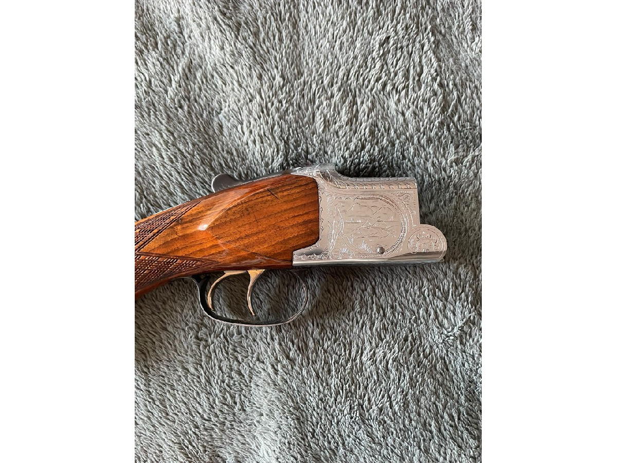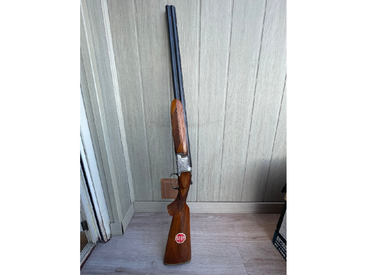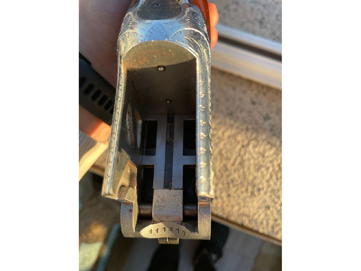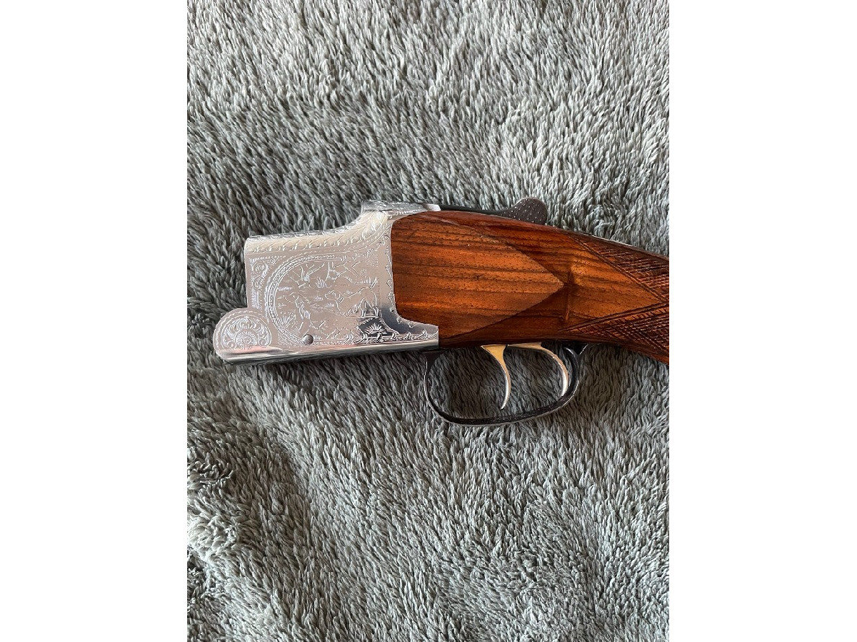Escopeta superpuesta Laurona Eibar calibre 12 de 71 centímetros de cañón. Doble gatillo selector. Extractora. Báscula con grabados de caza. Culata y guardamanos de madera de nogal con buen acabado. Escopeta robusta y fiable. Ideal tanto para caza como para tiro al plato. Se encuentra en perfecto estado de funcionamiento. Siempre bien cuidada. Se incluye funda.