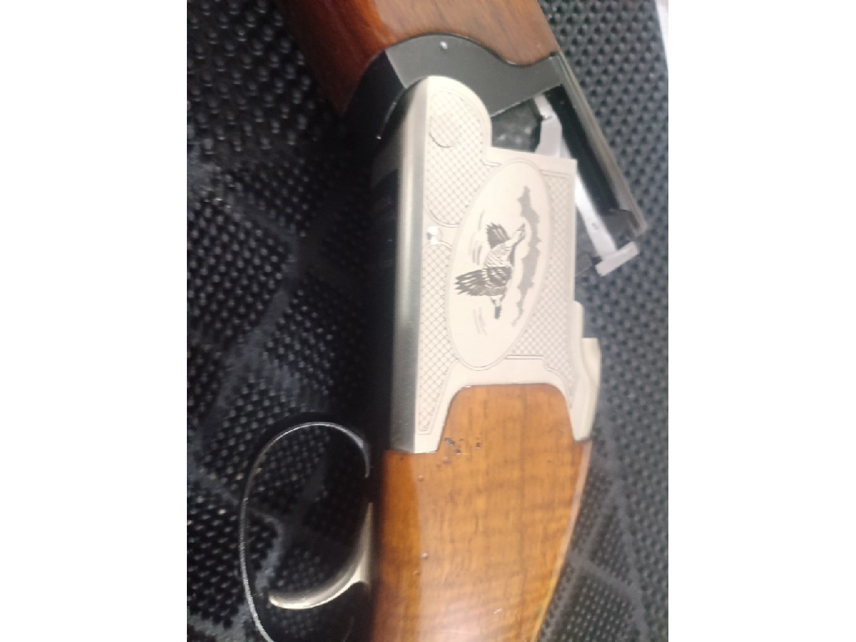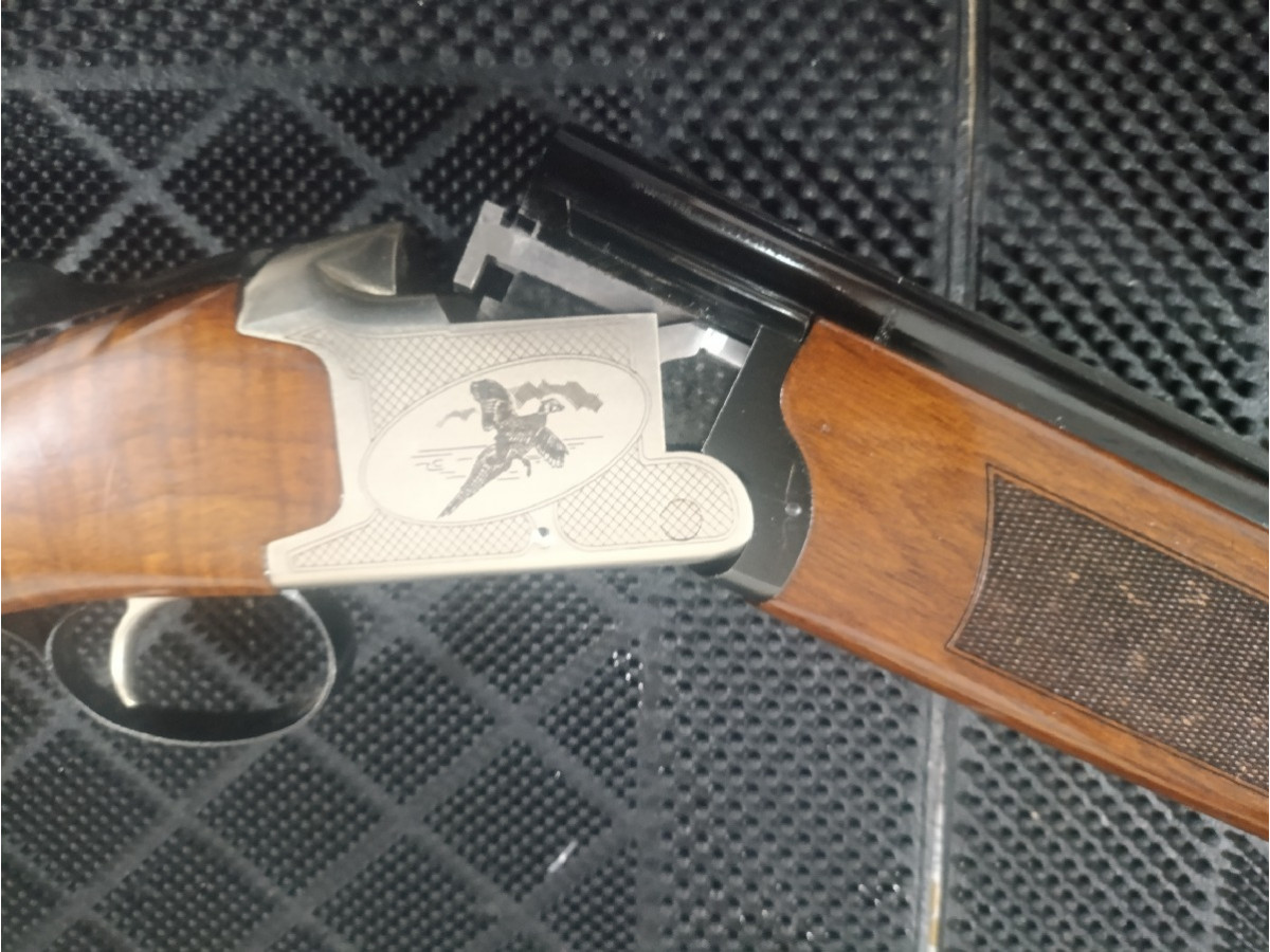 Escopeta superpuesta Laurona mod Evanor con polichokes intercambiables, selector de tiro, cañón ventilado y recámara Magnum para perdigones de acero. Está completamente nueva, no ha tirado ni dos cajas de cartuchos. También se cambia por rifle de cerrojo con mira telescópica en buen estado ajustando la diferencia.