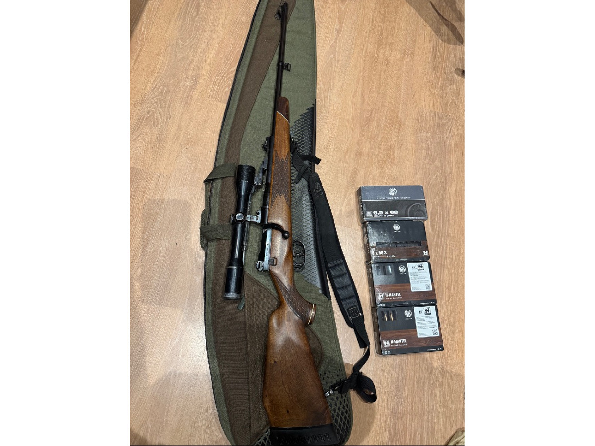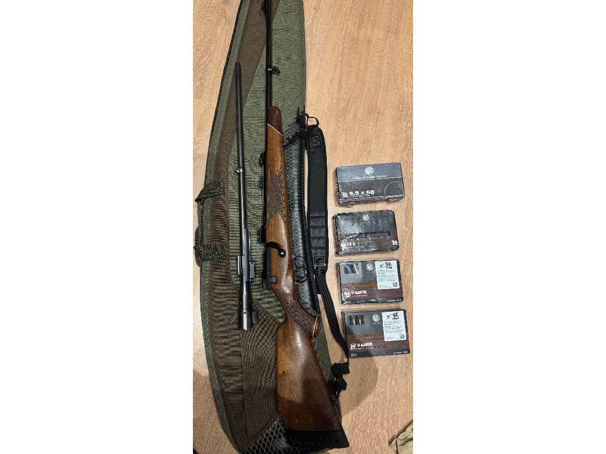Rifle Mauser 66S en calibre 8x68 y cañón adicional en calibre 6,5x68. Una auténtica joya de calibre para recechos y tiro a larga distancia. Perfecta agrupación. Ambos cañones con bases Apel. Se acompaña de visor Zeiss 1,5-6x42.