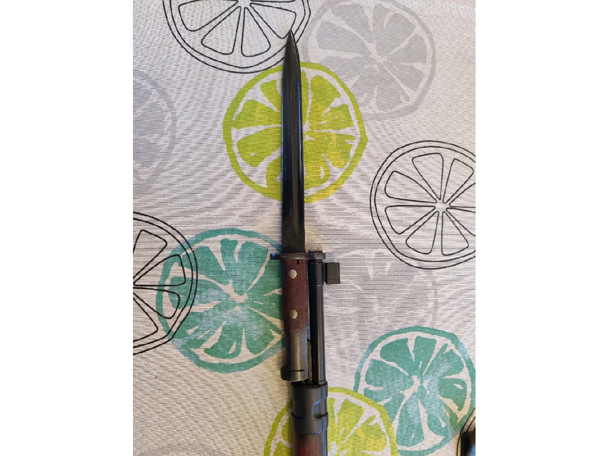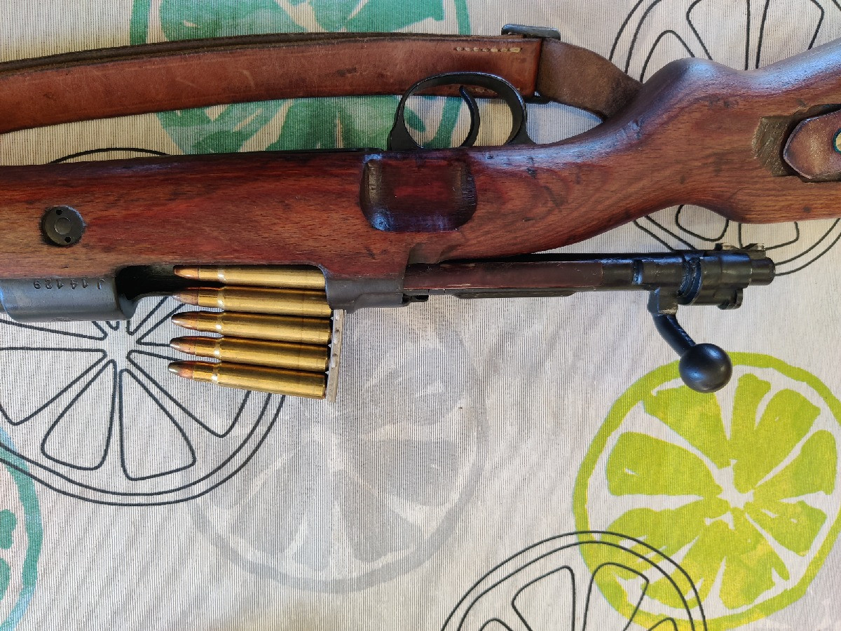 Fusil Máuser KAR98 Segunda Guerra Munidal, de la Wehrmacht ( aun conserva marcas de la wwII ). Reutilizado por Yugoslavia. Guiado, en excelente estado. Calibre 8x57 JS. Cartucheras, bayoneta y su funda, peines de munición y kit de limpieza originales.
