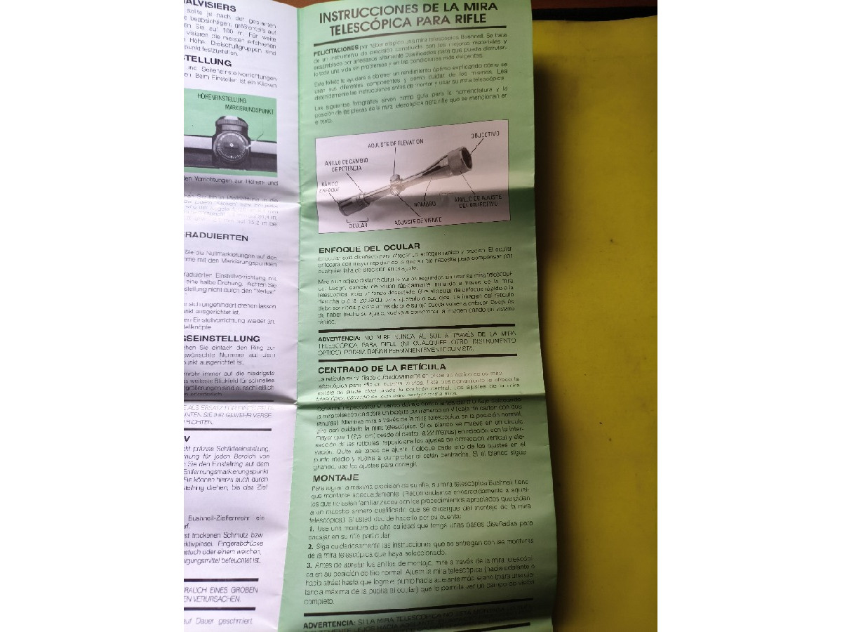 Mira telescópica o visor. Nuevo sin usar. Con retícula luminosa roja y verde. Incluye montura e instrucciones en español. Ópticas de excelente calidad.