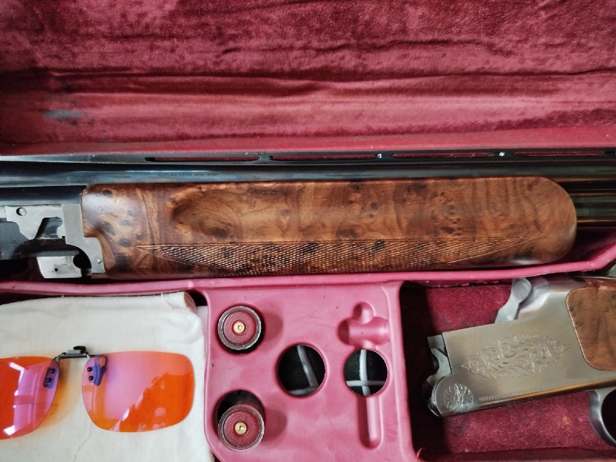 Escopeta Miroku 3800 TR1, trap, 76 de cañón, 1 y 2 estrellas, banda ancha, punto de mira intermedio, selector de tiro, maderas en buen estado recién hechas, metales en buen estado (tiene un leve golpe en la banda), maletín Negrini y fundas de protección anti humedad.
