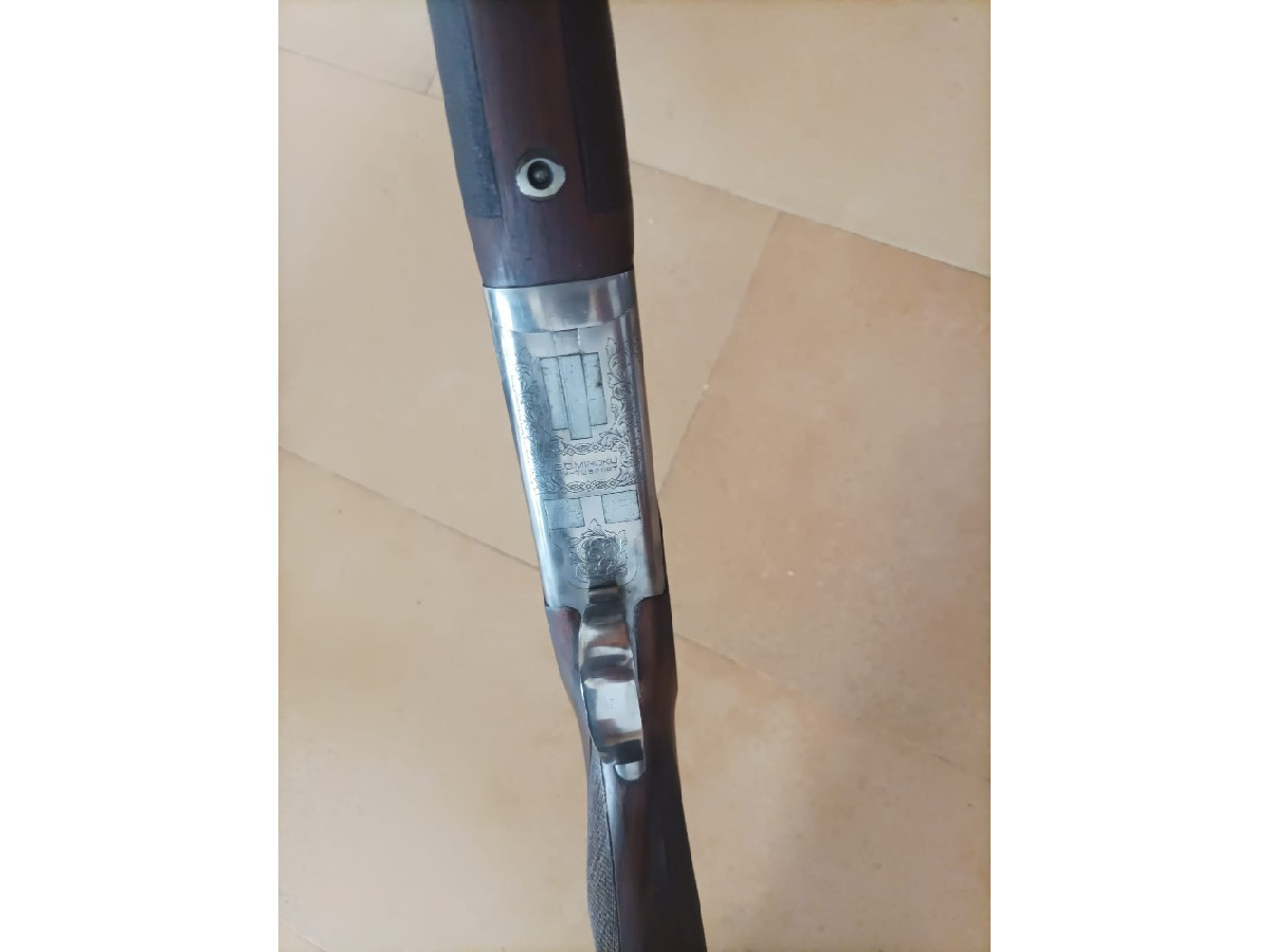 76 cm de cañón, 6 choques interiores y 4 exteriores. Maderas grado 3-4. Pocos tiros, cierre bien a la derecha. Pavón muy bien. Se incluye maletín.