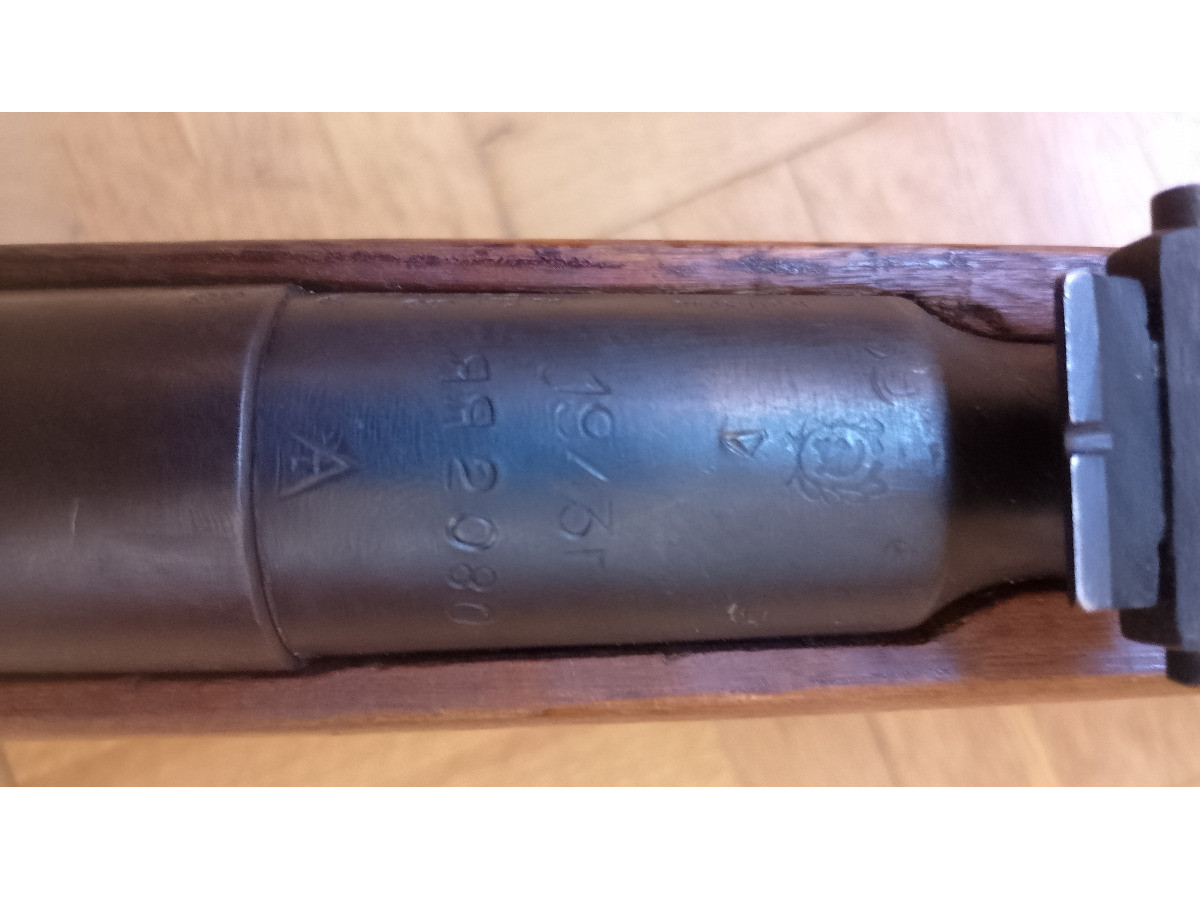 Rifle histórico, coinciden todos los números de cerrojo, cañón, cargador, numeración 2080. Está en muy buen estado.