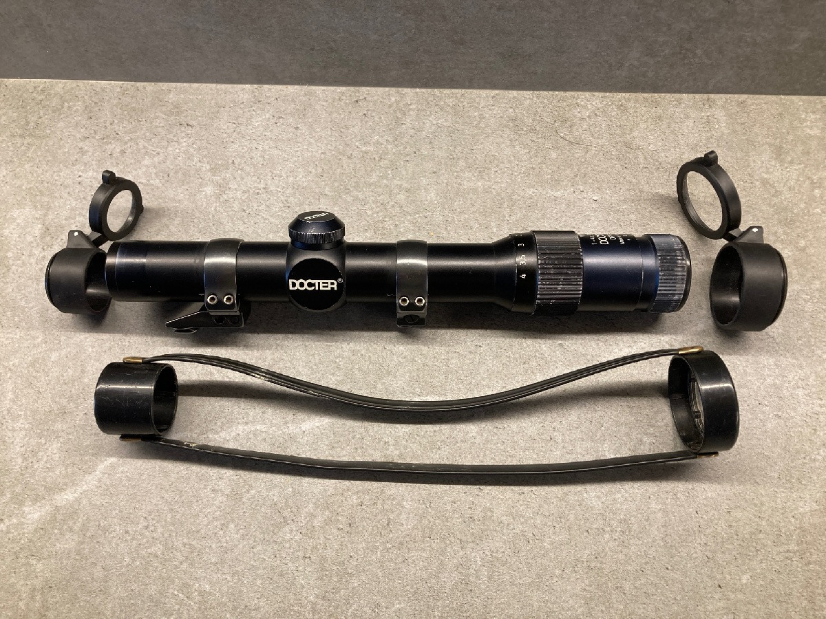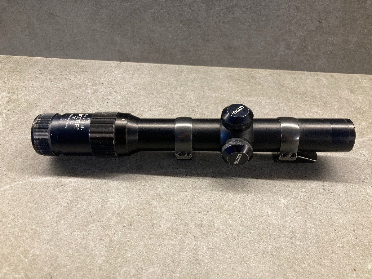 Se vende visor para batida de la prestigiosa marca belga Noblex-Docter 1-4x24. La óptica es Karl Zeiss ya que Docter compró la fábrica de Zeiss para la fabricación de este tipo de ópticas. La retícula no es iluminada y es de 2º plano. Se vende con funda Venator.