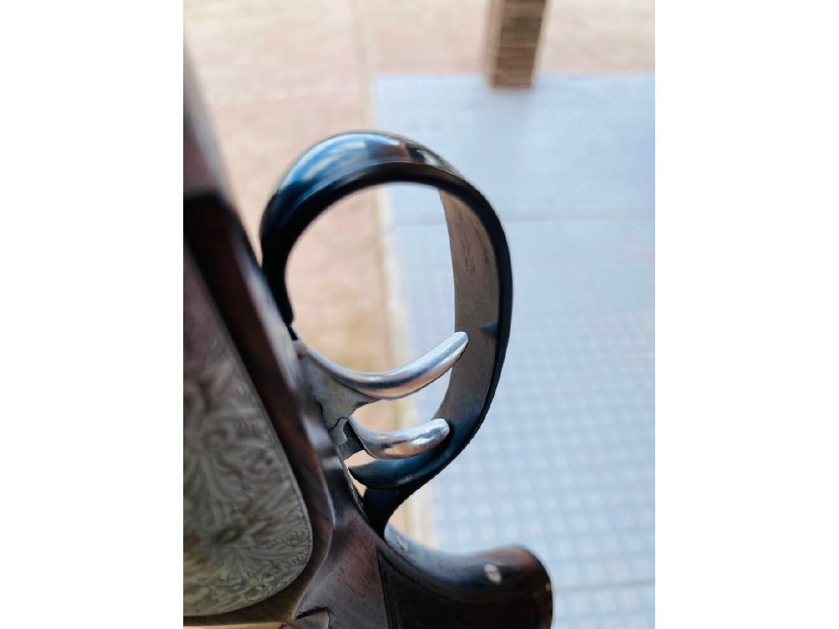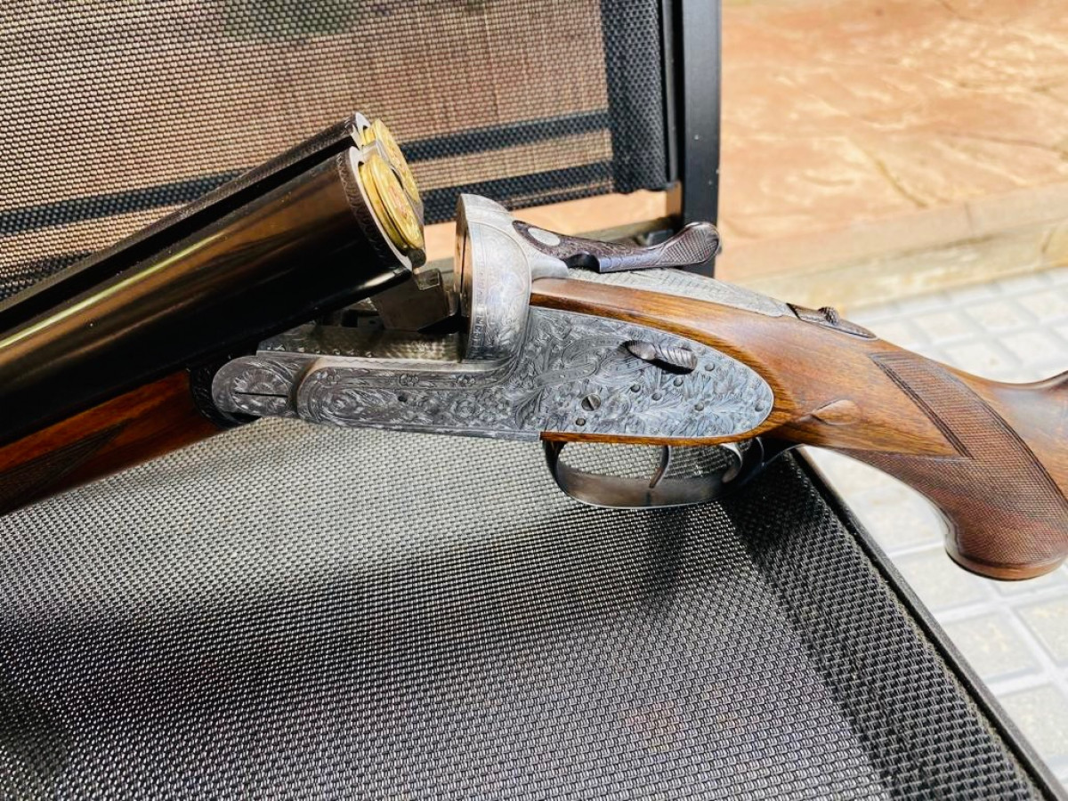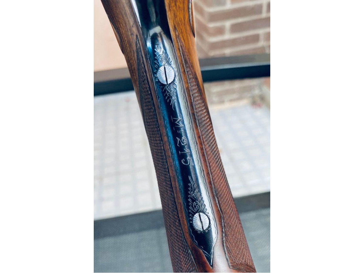 Escopeta paralela unión armera 215 calibre 12, 3* y 1*, expulsora, maderas al aceite, muy ligera y fina. La escopeta esta en estado espectacular.