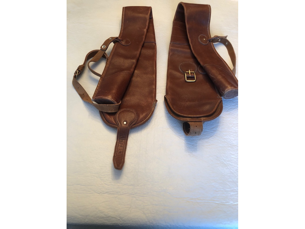 PAREJA DE ESCOPETAS AYA, CON ESTUCHE Y PAREJA DE FUNDAS DE CUERO HECHOS A MEDIDA.