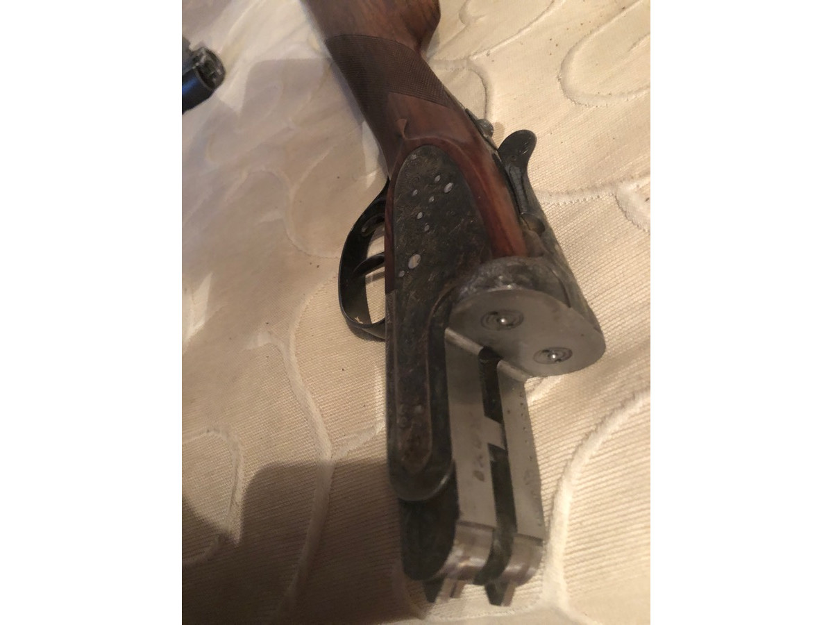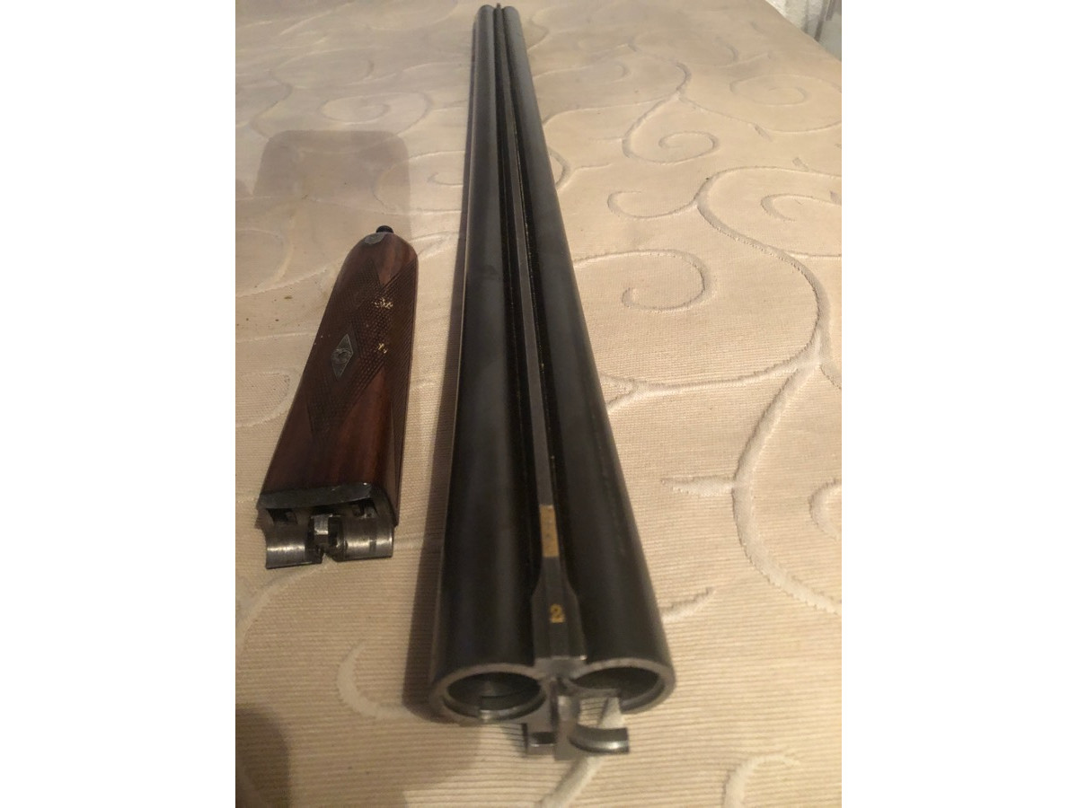 Pareja de escopetas gemelas, calibre 12-70, cañones yustapuestos, marca AYA (Aguirre & Aranzäbal) modelo XXV, fabricadas en el año 1974., preciosos grabados finos a mano estilo ingles, culata inglesa de nogal, solista churchill, cañones de 63,5 cm de lago (25 pulgadas),con chores de 4 y 3 *, expulsores automáticos, excelente estado. Parece ser que ya no se fabrican por lo que son pieza de coleccionista. Su precio nuevas, según figura en un catálogo de la firma es de 12.500 €