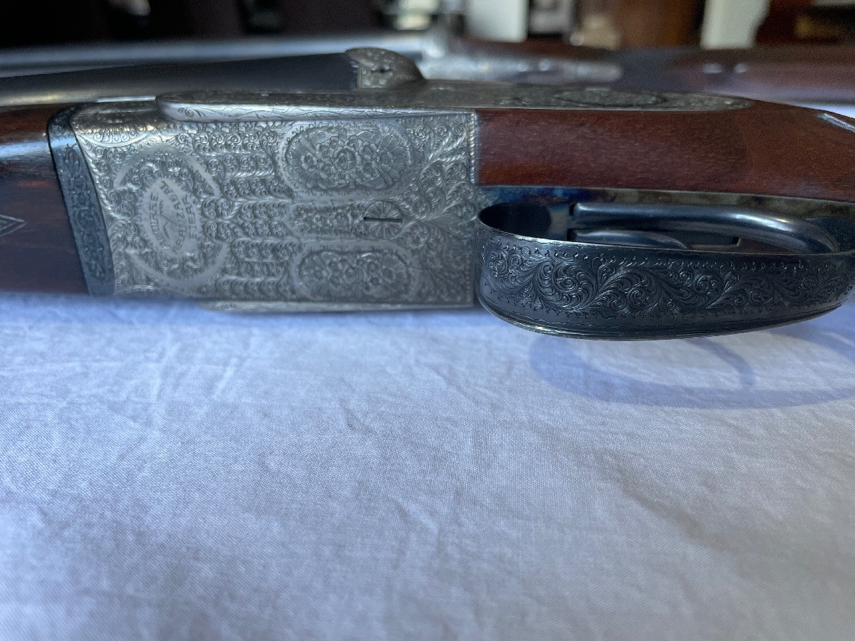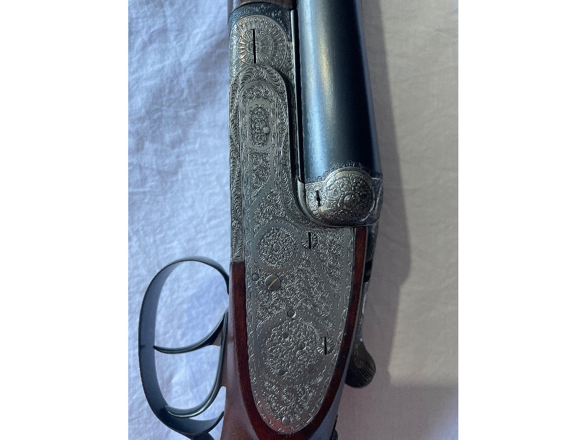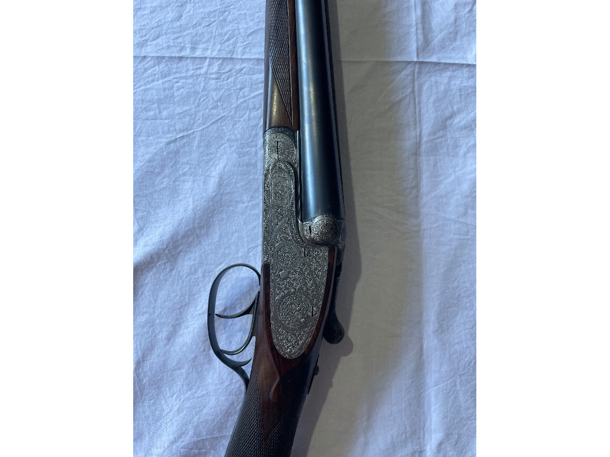Pareja de paralelas AYA, creo que es el modelo 56. A una de ellas se le encargaron los caños un poco más cerrados ya que se usaban para los ojeos de perdices y para conejos en zonas sucias, como escobas. Mejor verlas. Valoradas en dos armerÃas entre 4500 y 5000€.