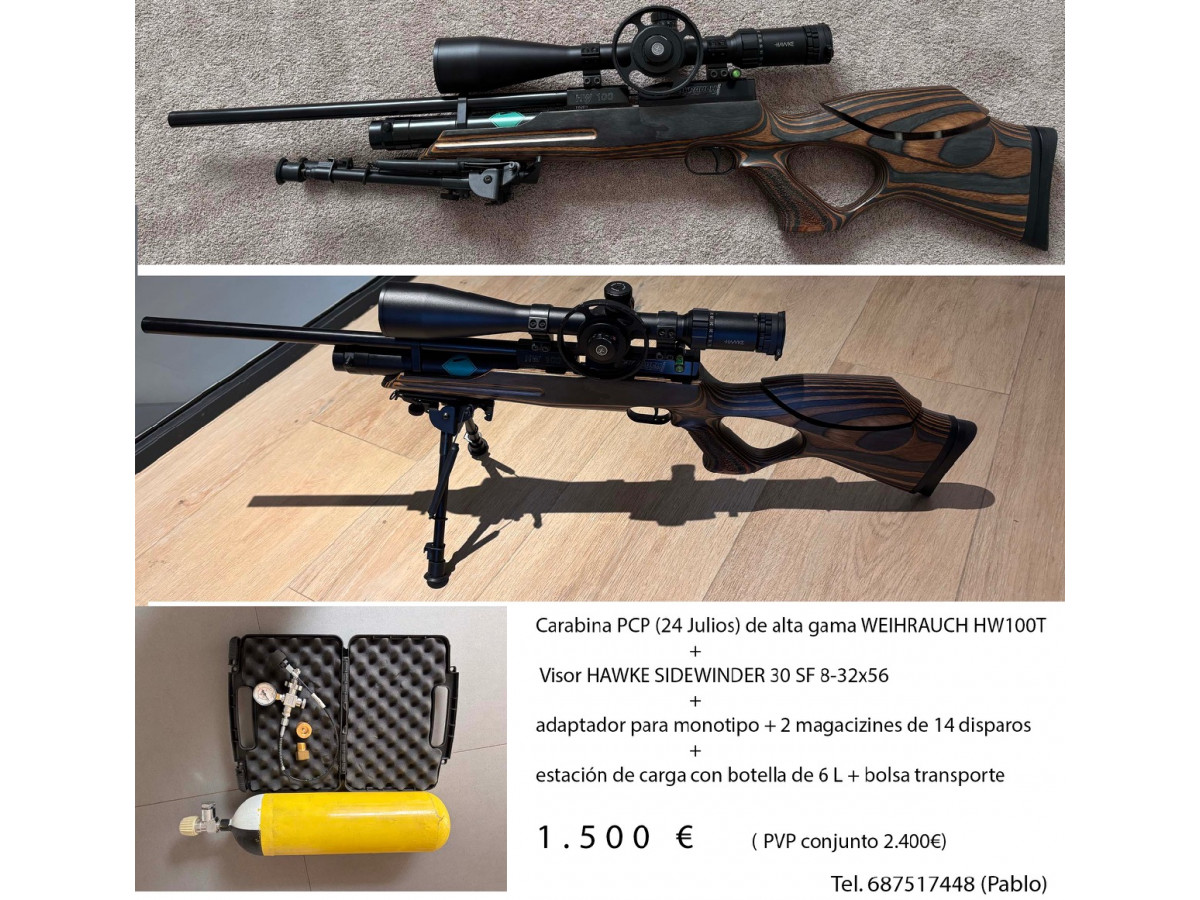 Carabina PCP 24 J Weihrauch HW100T con los accesorios de la primera fotos mas cronógrafo y supresor (compatible con el que ya tiene llevando doble supresión.