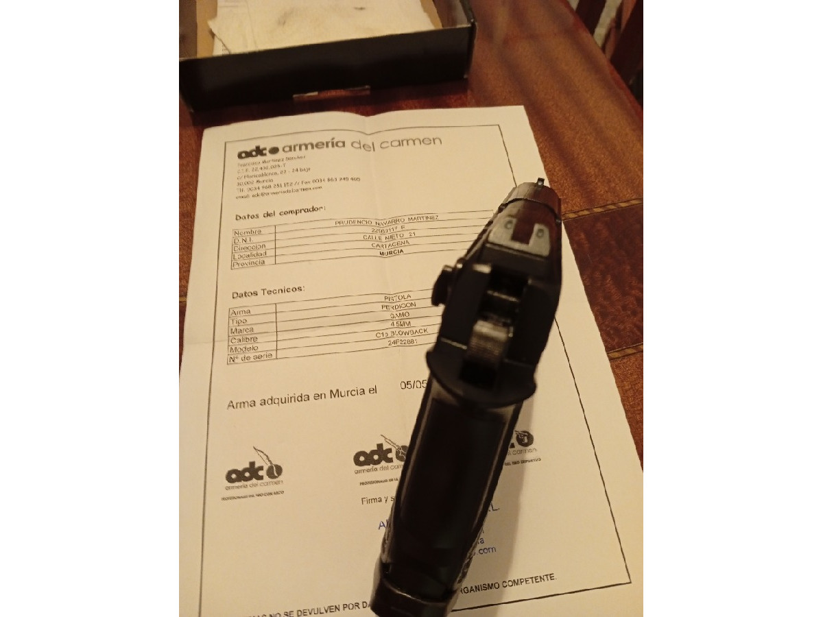 Se ofrece con dos cargadores extras dobles de 8 rondas.