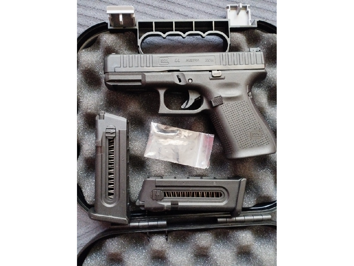 Pistola Glock 44 calibre 22 LR, como nueva, vendo para comprar una de tiro olímpico. Con dos cargadores.