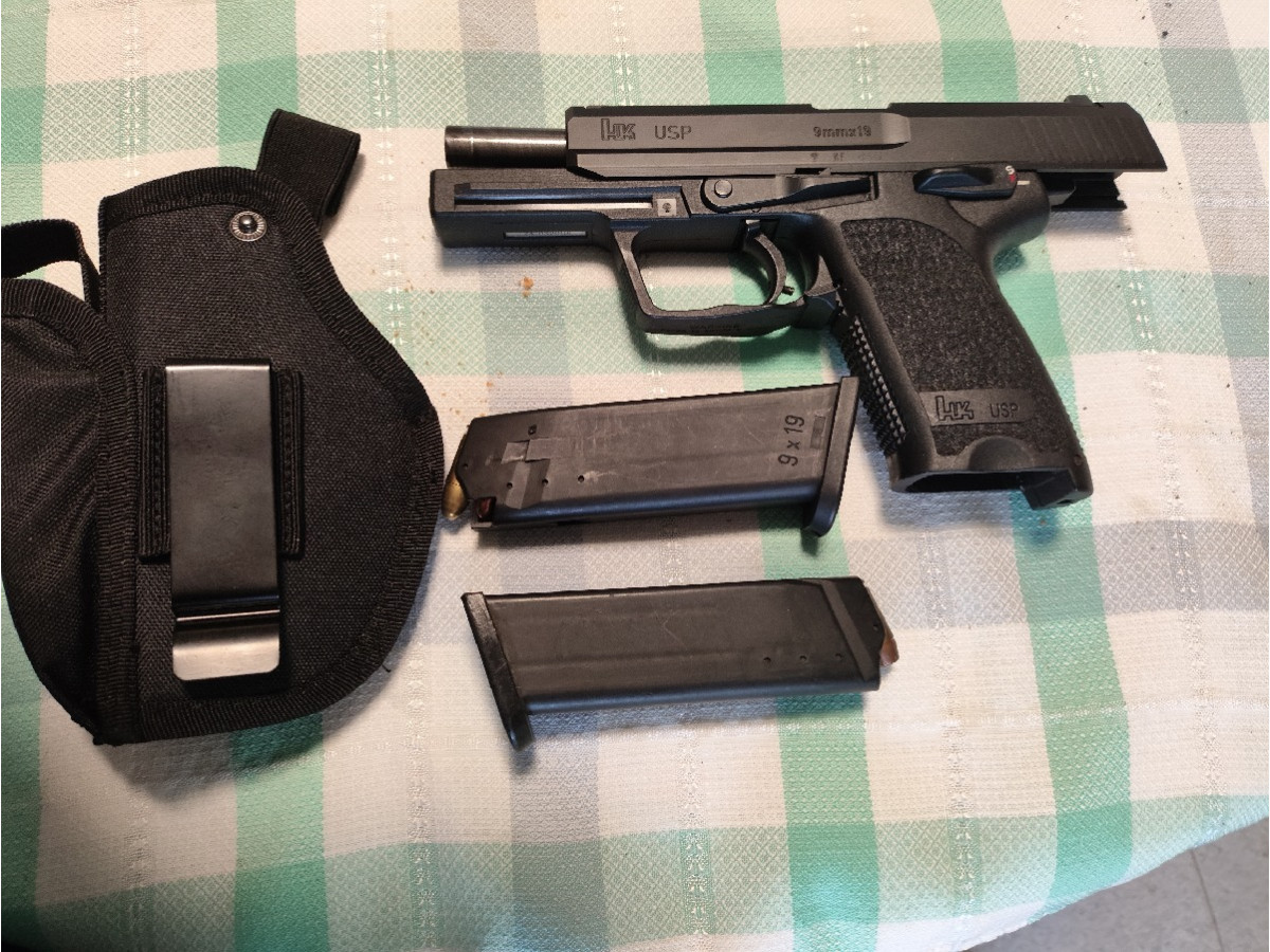 Pistola HK modelo USP calibre 9mm Parabellum con dos cargadores, funda y maletín de transporte. Como nueva, amparada con licencia tipo B.