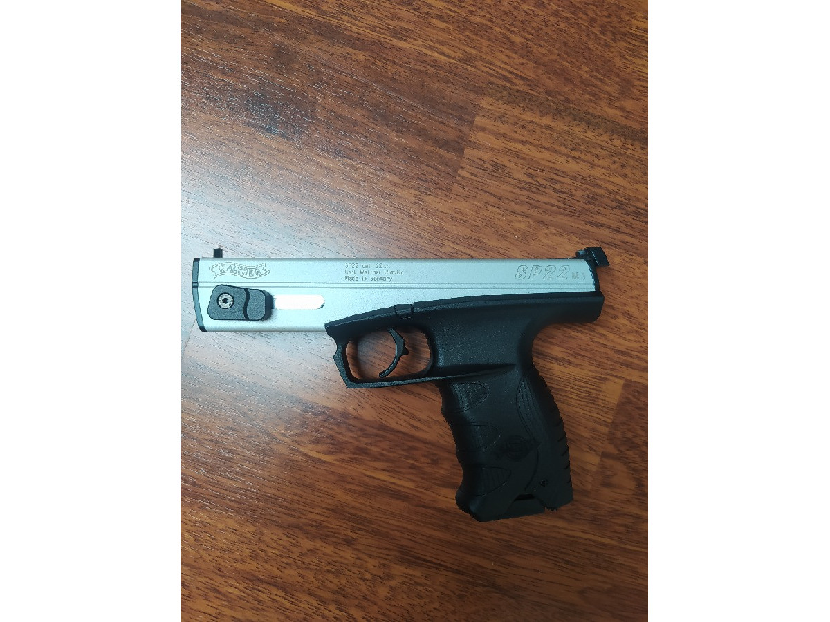 Pistola Walther calibre .22. Producto en perfecto estado, ideal para iniciados al tiro olímpico y de tacto agradable a la mano.
