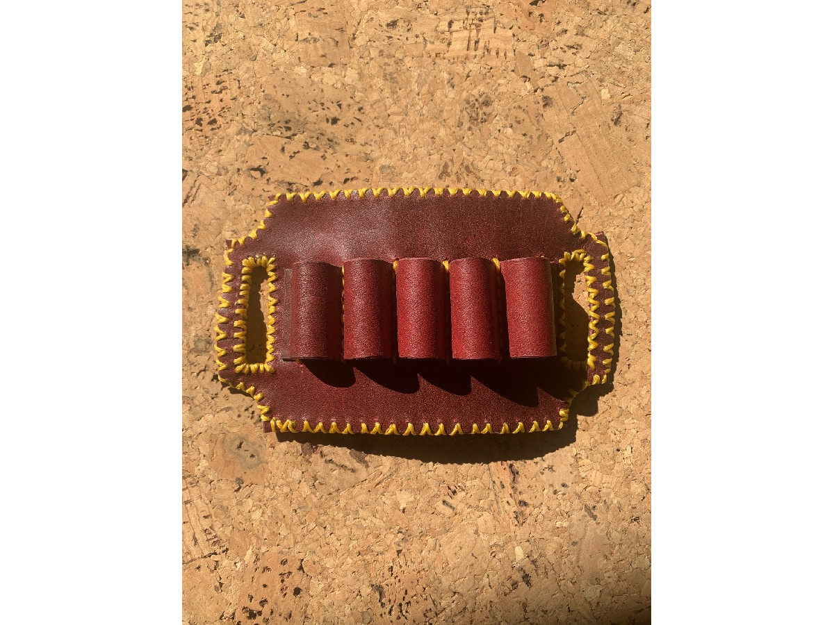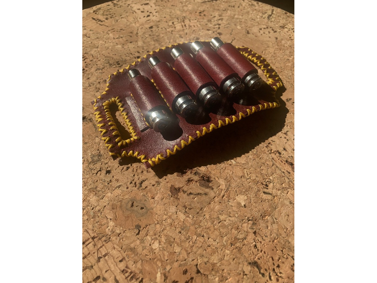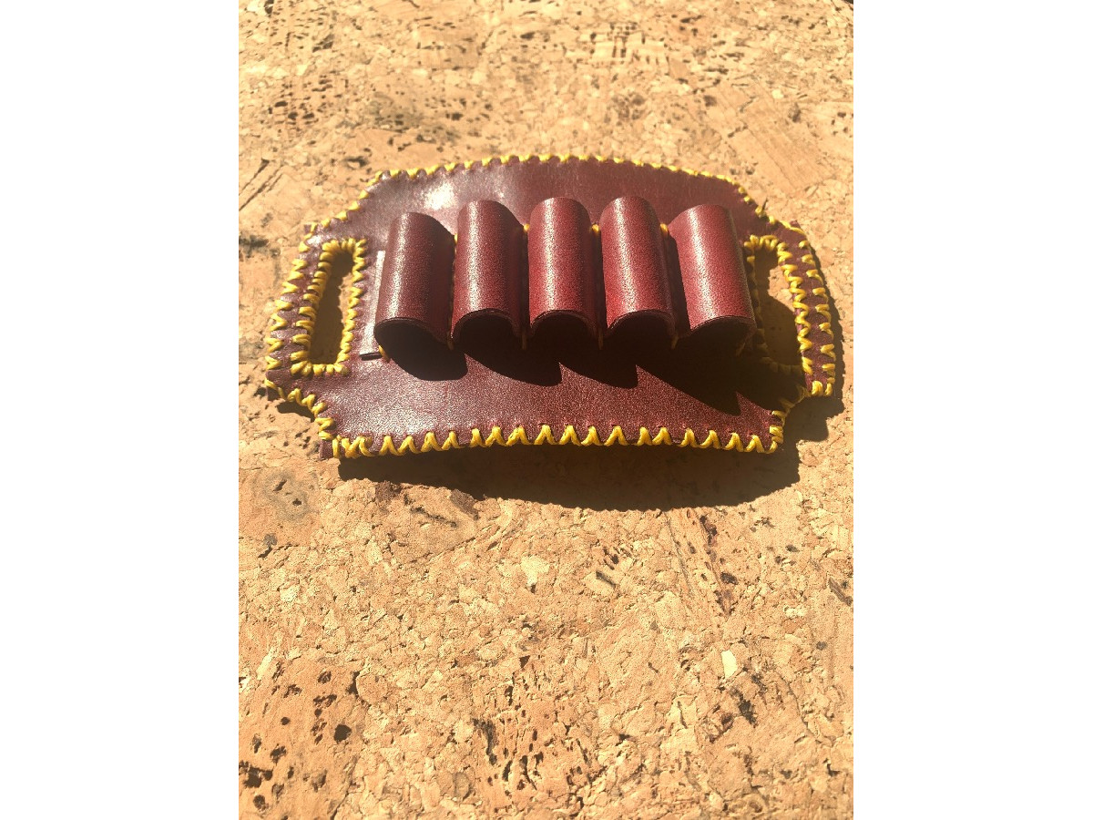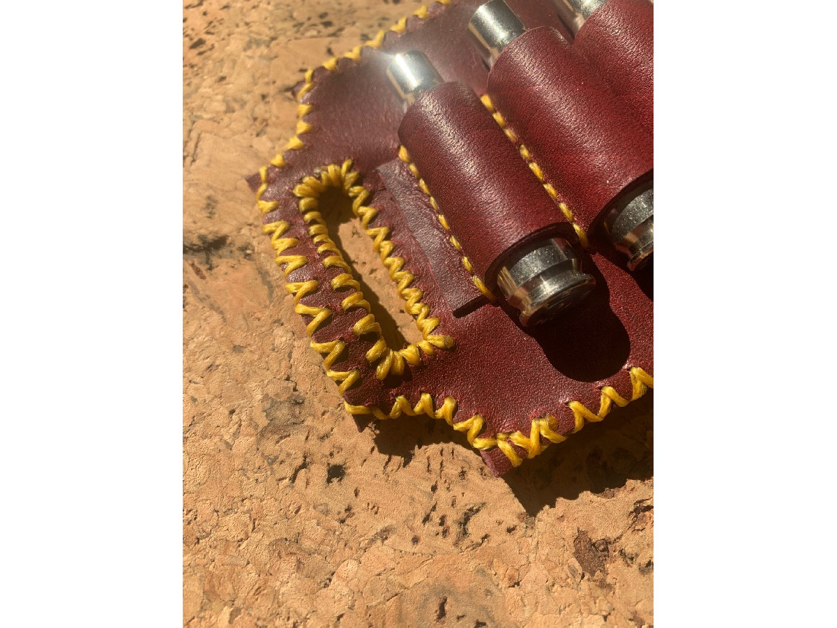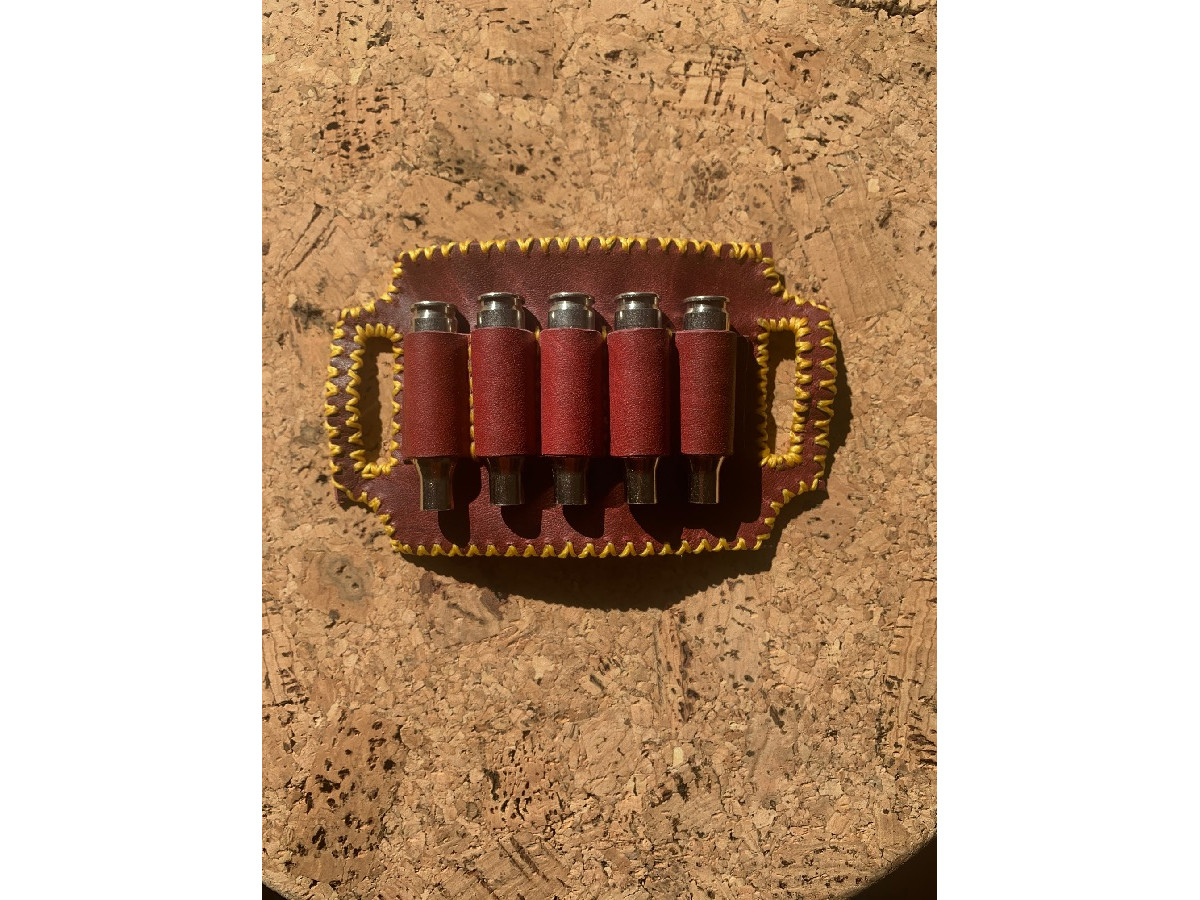 Porta balas artesanal para 5 balas, elaborada completamente a mano en cuero de venado de alta calidad. Cada pieza está cortada, moldeada y cosida manualmente, cuidando cada detalle para lograr un acabado resistente y funcional. El cuero de venado aporta flexibilidad, durabilidad y una textura natural que mejora con el uso, haciendo que cada pieza envejezca con el uso de forma única. Diseñada para portar 5 cartuchos de forma segura y accesible, aunque es completamente personalizable tanto en capacidad de balas y cartuchos como del calibre de los mismos. Al ser un producto artesanal, pueden existir ligeras variaciones que hacen cada unidad diferente.