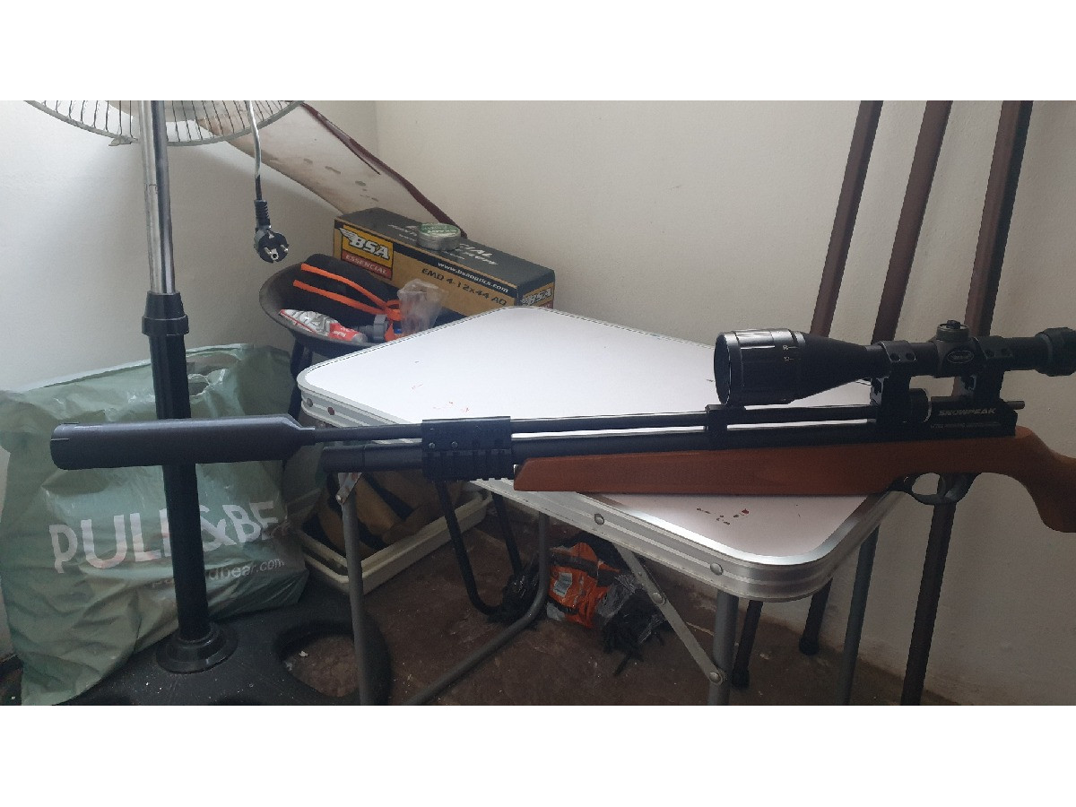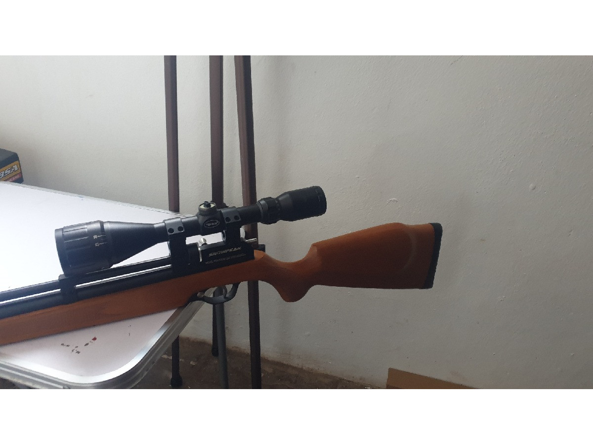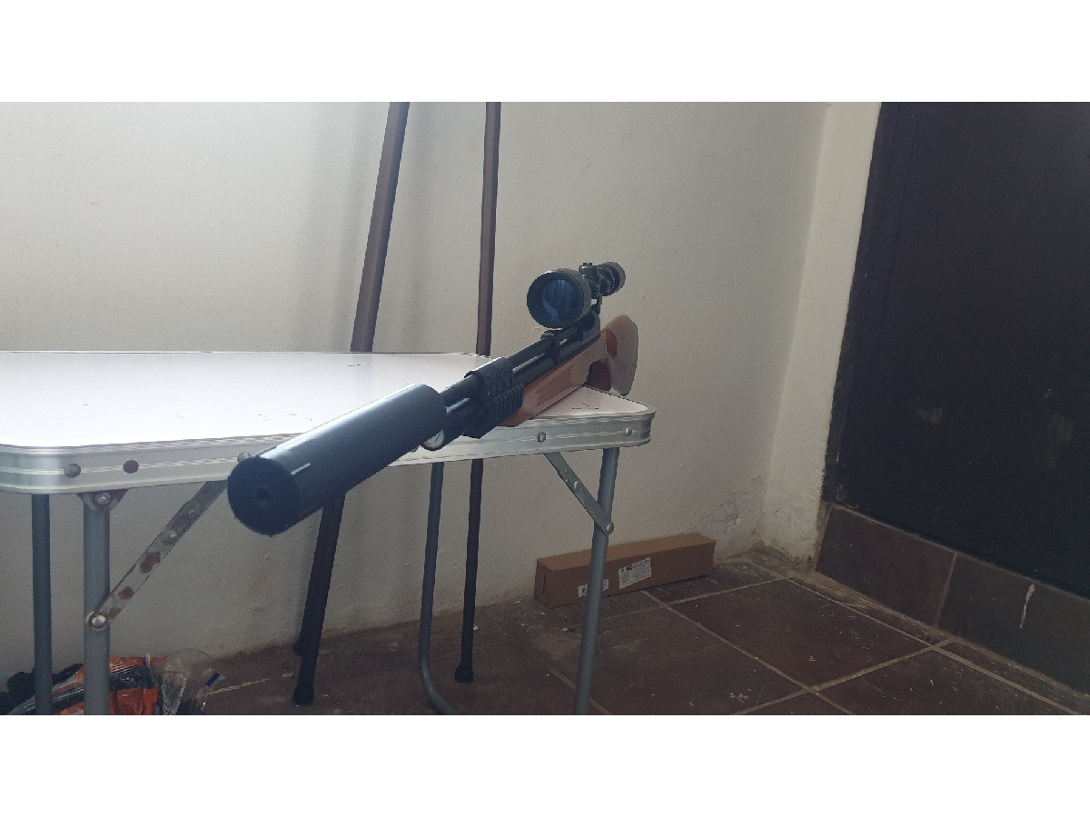 Carabina Pr 900 r en estado impecable tiene visor bsa 6x12x44 y tiene medio cañón cubierto con anillas y carriles de 22 echo en r3 tengo 2 suoresore y bomba de llenado todo completo