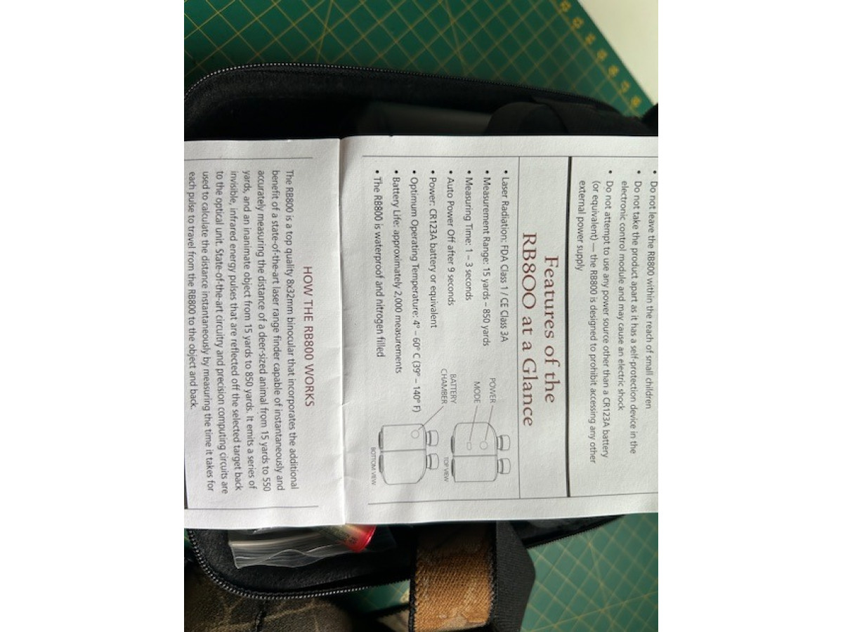 Prismáticos LEUPOLD RB 800 8x32, con telémetro luminoso incorporado, mide en metros y yardas hasta 800 metros, muy preciso, con funda rígida y arnés. Envío por cuenta del comprador
