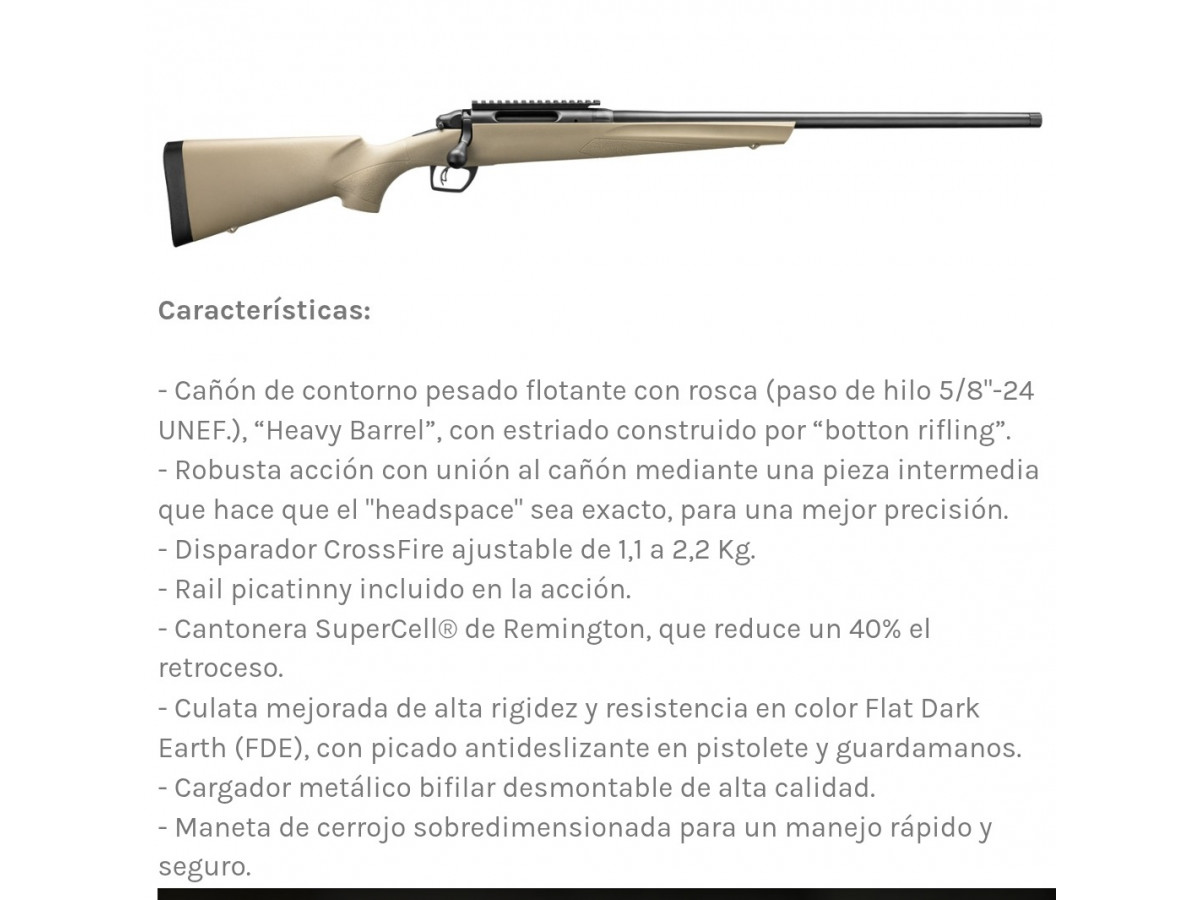 Rifle Remington mod 783 calibre 308 Winchester Varmint sintético color arena con rosca y carril picatinny. Como nuevo sin usar, sin tiros.