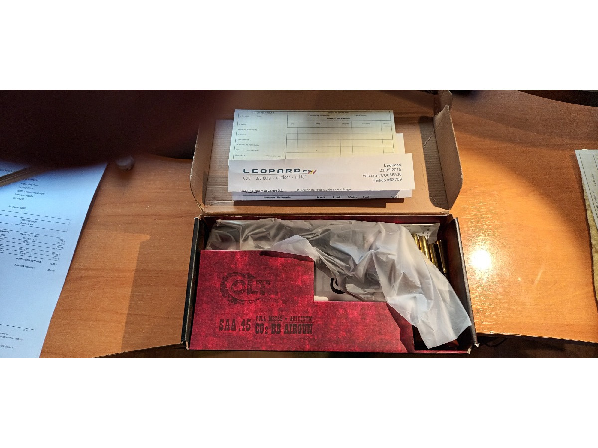 Revólver CO2, calibre 4.5 Umarex, negro, single action. Arma muy cuidada, perfecta, de colección y poco usada. Adquirida en armería deportiva en 2015. Por razones físicas que no me permiten ejercitar el tiro, debo vender mi colección de armas. Precio actual alrededor de 200€. Se aporta documentación de compra y tarjeta de armas.